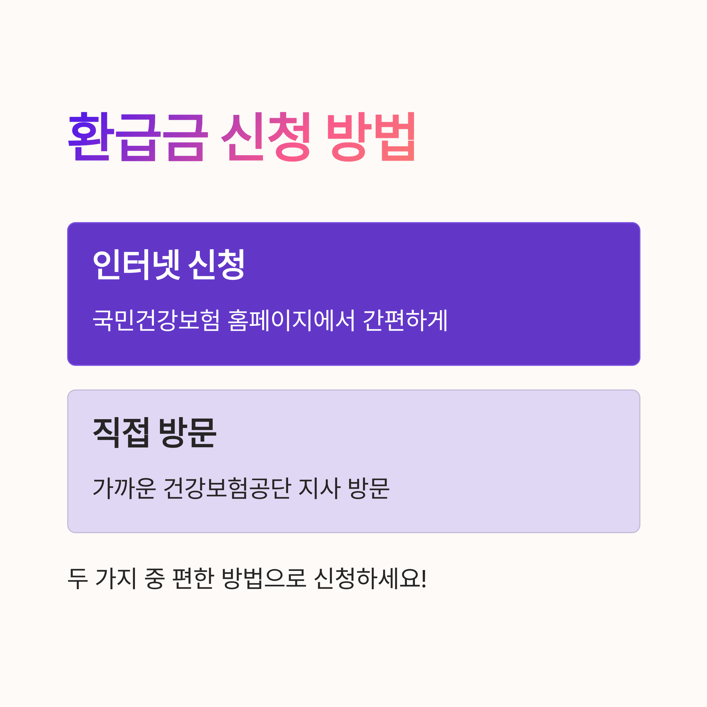 자, 이제 어떻게 하면 환급을 받을 수 있을까요? 🤔 먼저 국민건강보험 홈페이지에 가서 로그인하고, "환급금 조회" 메뉴로 들어가세요. 여기서 환급 가능한 금액이 있는지 확인할 수 있답니다. 만약 조회 결과 환급금이 있다면, 바로 신청할 수 있답니다! 직접 방문하거나 인터넷 신청, 두 가지 중 편한 방법을 선택해 신청하면 끝~ 너무 쉽죠? 😊