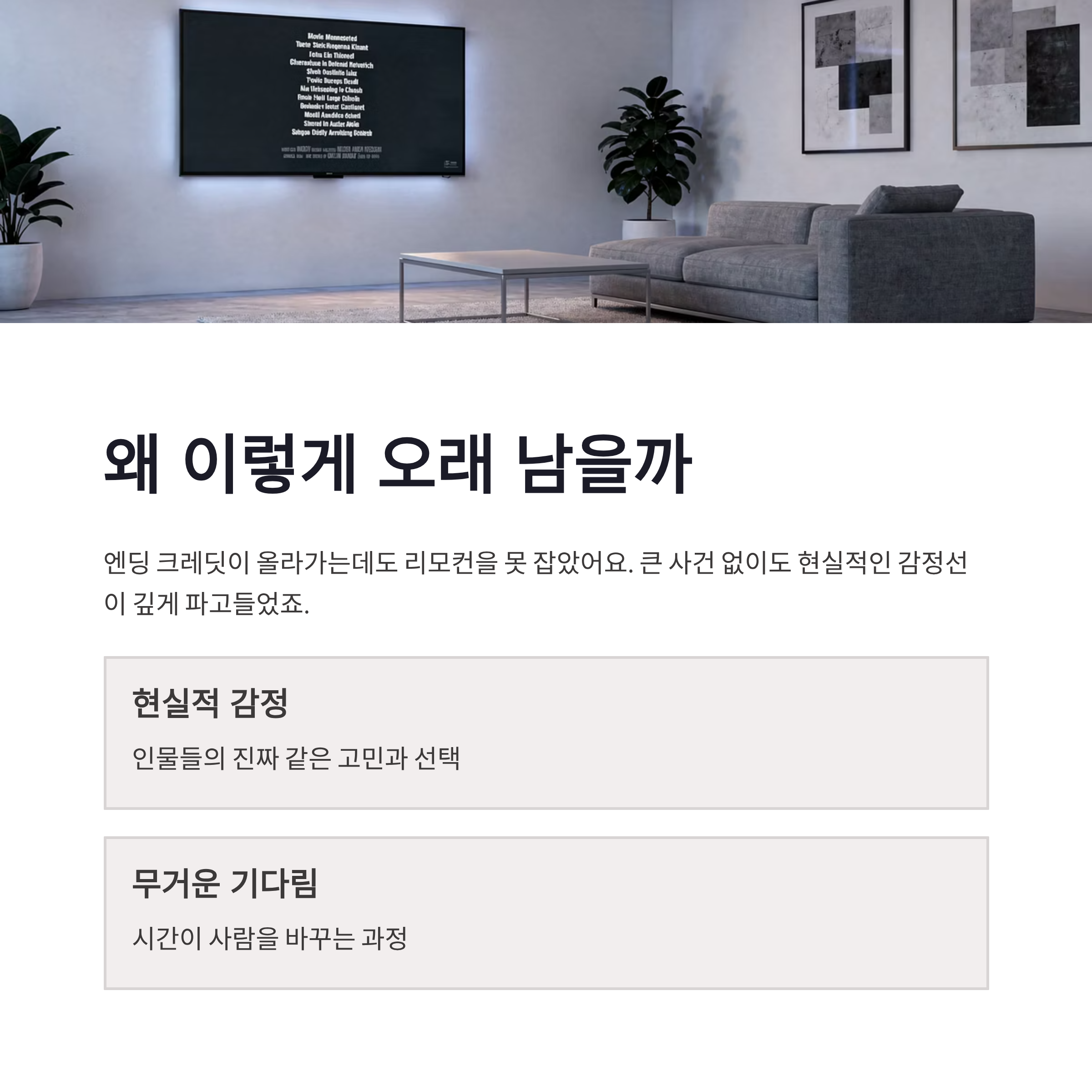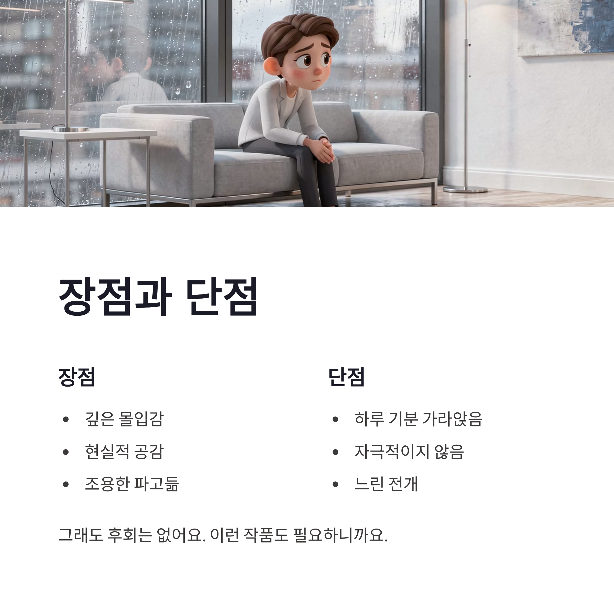 | 분위기 | 잔잔함, 현실 공감 |