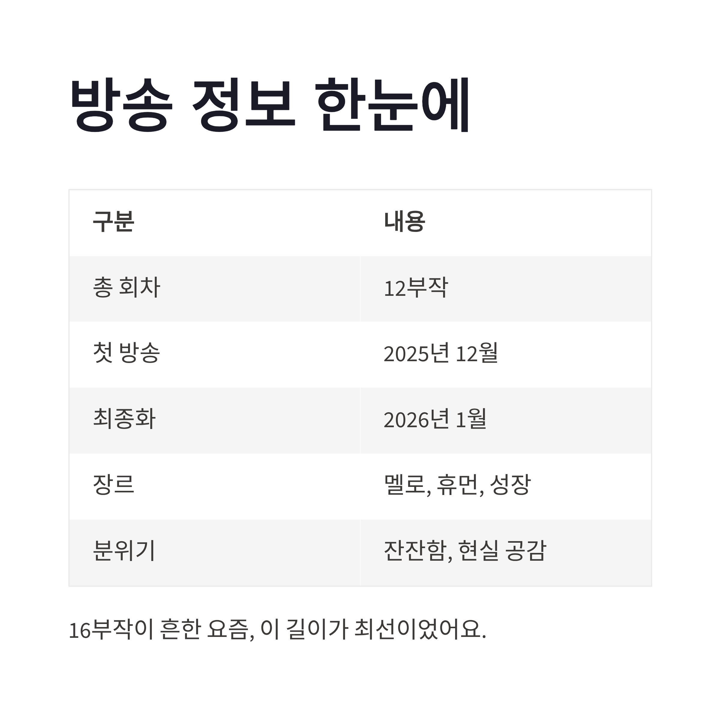| 장르 | 멜로, 휴먼, 성장 |
