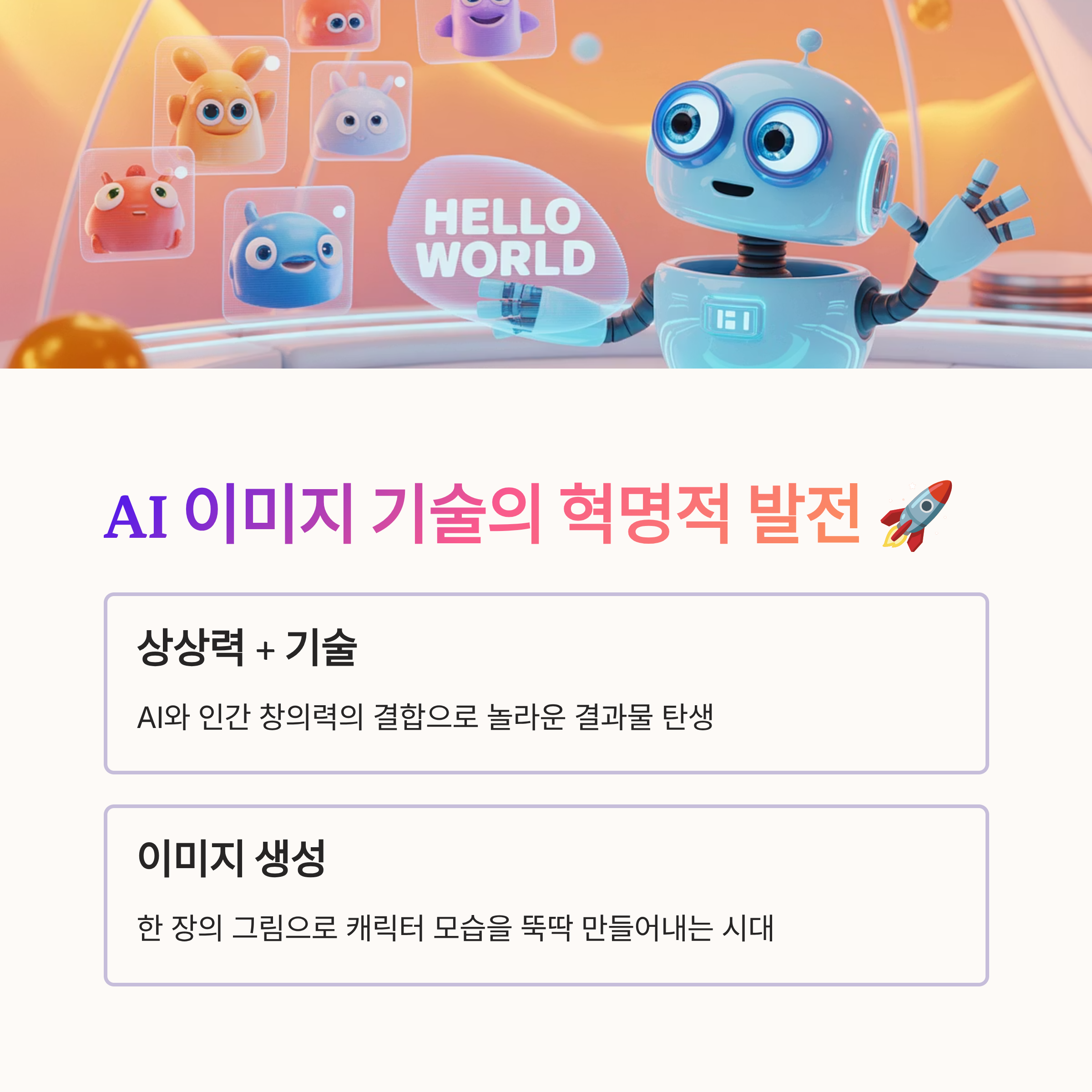 AI 기술의 발전 어마어마하죠? 뭐, 다들 아시겠지만 AI의 상상력과 인간의 창의력이 결합하면 정말 대단한 결과물이 탄생하더라구요! 🤖💡 특히 이미지 생성 AI의 발전 덕분에 이제는 그림 한 장으로 내 캐릭터 모습을 뚝딱 만들어 낼 수 있는 시대가 되었어요. 과거에는 이런 거 상상도 못 했는데 벌써 현실이라니, 신기하지 않습니까? 여러분도 다양한 도구를 활용해 꿈에 그리던 모습을 만들 수 있답니다.