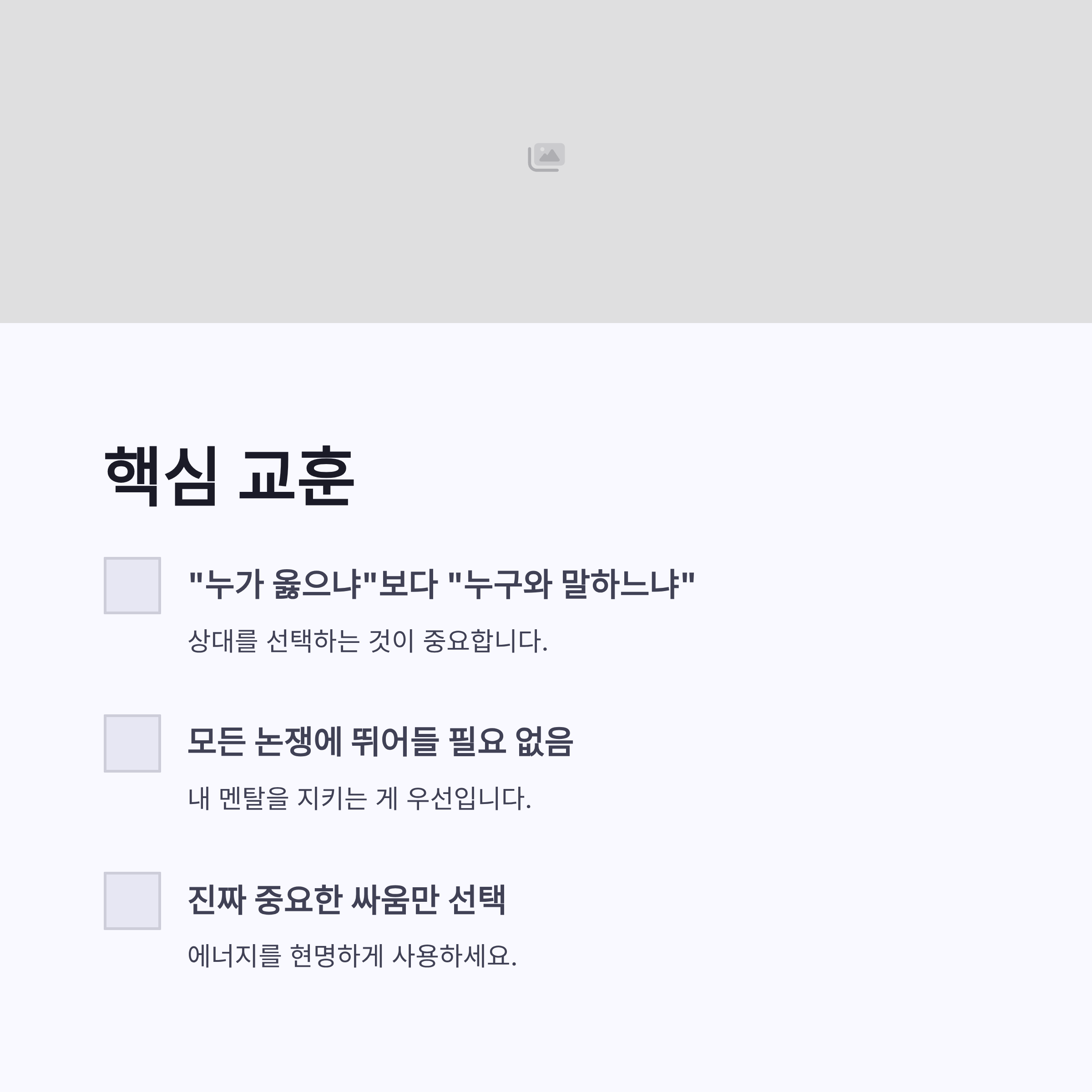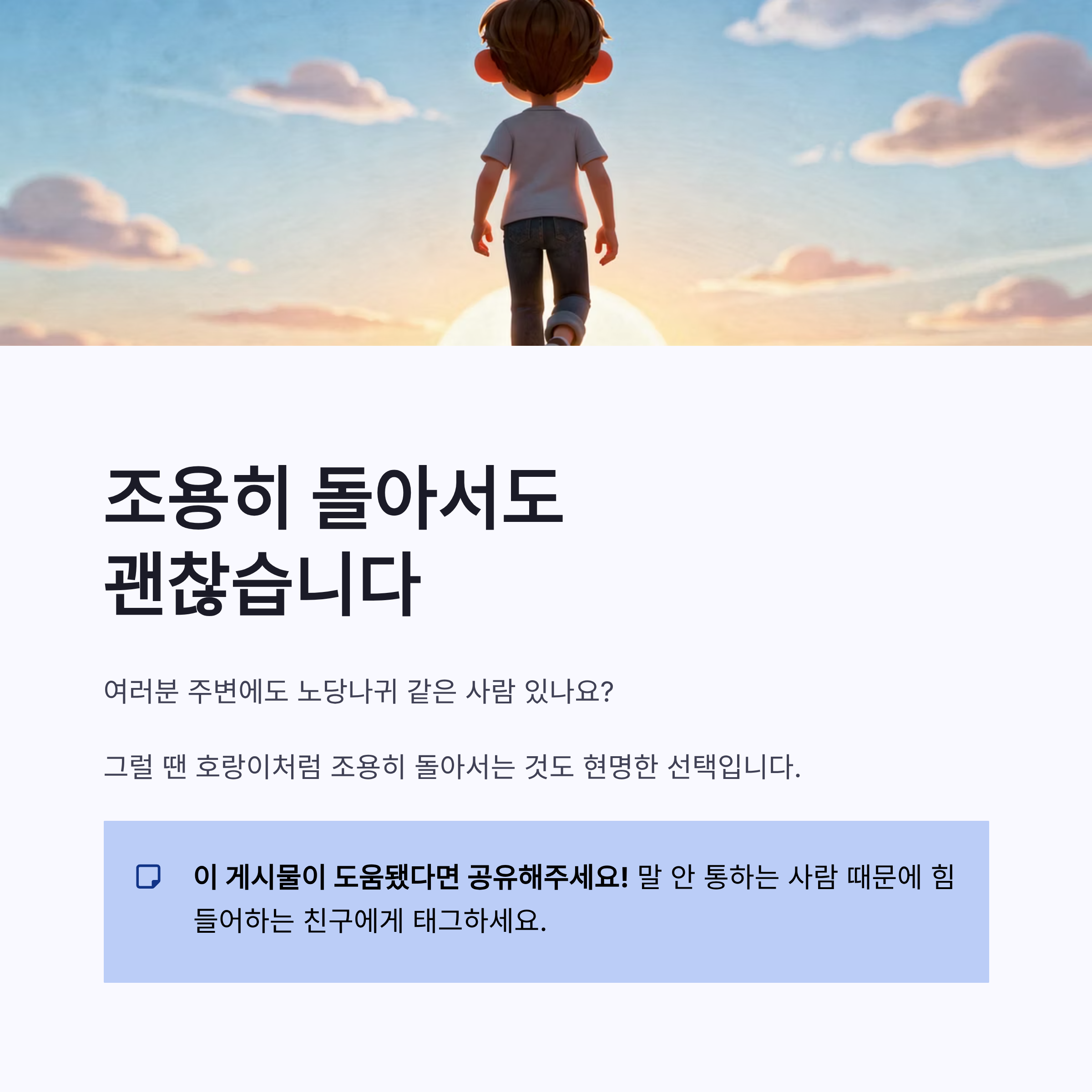 결국 노당나귀와 호랑이 이야기는 “누가 옳으냐”보다 “누구와 말하느냐”를 묻는 우화 같아요. 모든 논쟁에 뛰어들 필요는 없구요, 가끔은 그냥 지나치는 게 내 멘탈을 지키는 길이더라구요. 진짜 중요한 싸움에만 힘을 쓰는 게 현명한 선택 아닐까 싶었어요. 요즘 여러분 주변에도 노당나귀 같은 사람 있나요? 그럴 땐… 그냥 조용히 호랑이처럼 돌아서도 괜찮지 않을까요 ㅎㅎ