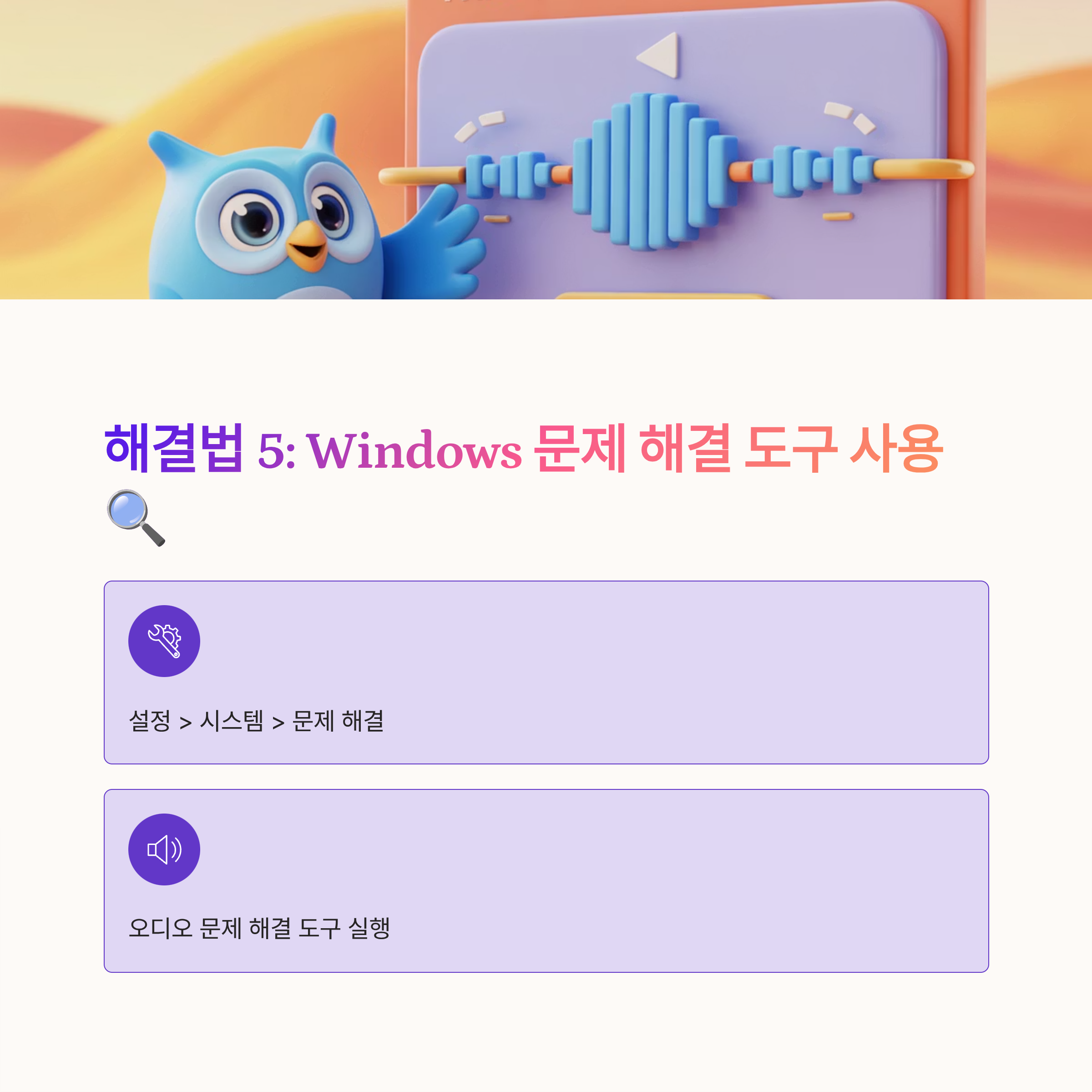 4. Windows 오디오 서비스 재시작 및 문제 해결 도구 사용 🔧
