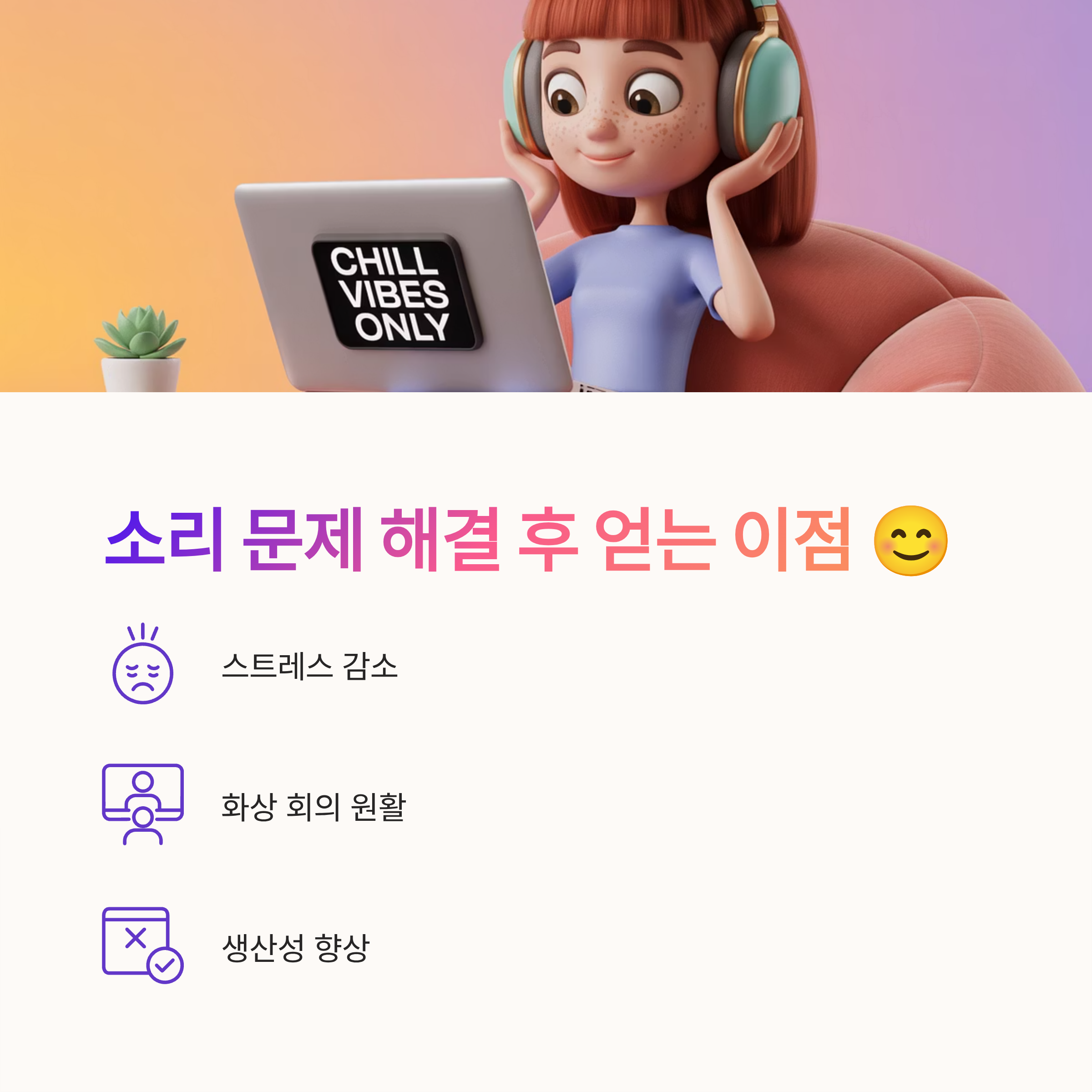 문제가 일단 해결되고 나면 뭐가 좋냐구요? 우선 스트레스가 훨씬 줄죠! 😄 그리고 중요한 화상 회의나 즐거운 영상 콘텐츠도 마음 편히 즐길 수 있습니다. 사소한 문제로 인한 시간을 줄이고, 더 생산적으로 일할 수 있는 환경도 만들 수 있는 거니까요! 노트북 소리 문제는 생각보다 쉽게 해결할 수 있으니, 문제가 생길 때마다 당황하지 마세요!