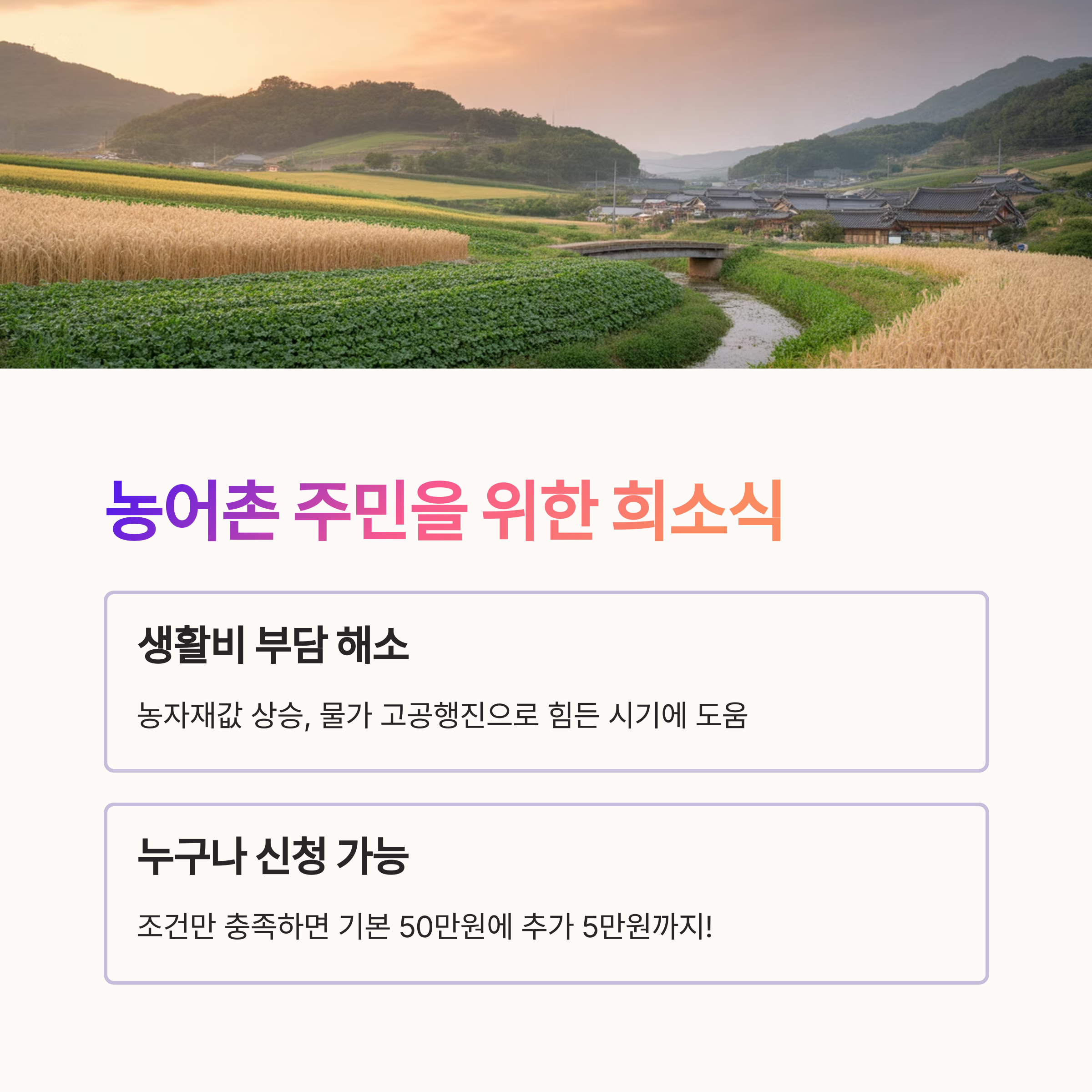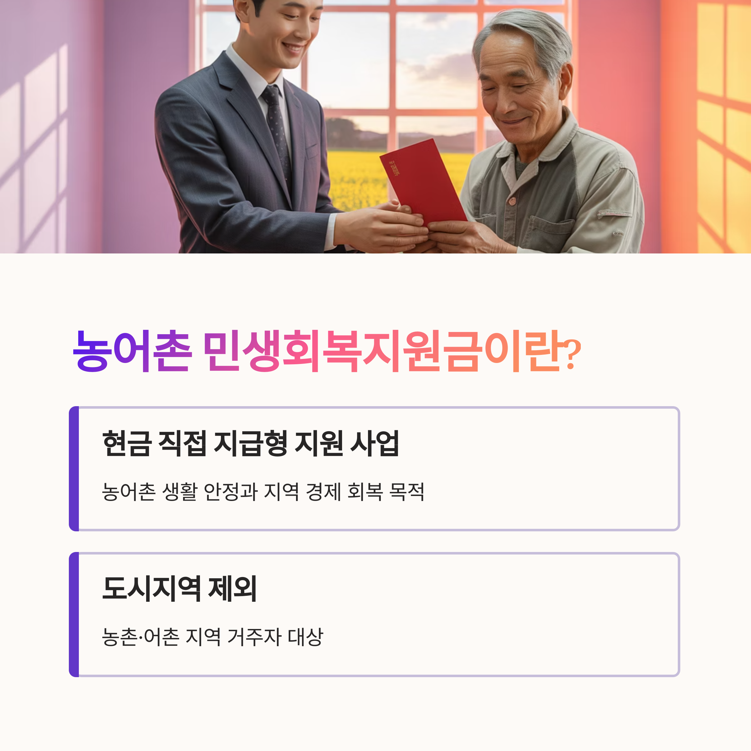 정부가 농어촌의 생활 안정과 지역 경제 회복을 위해 추진하는 현금 직접 지급형 지원 사업이에요.