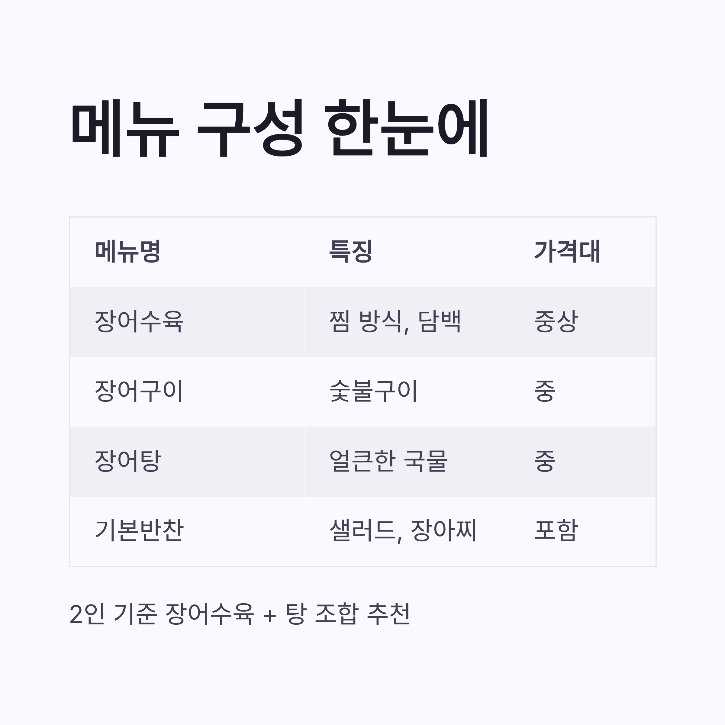 | 메뉴명 | 구성 | 가격대 |