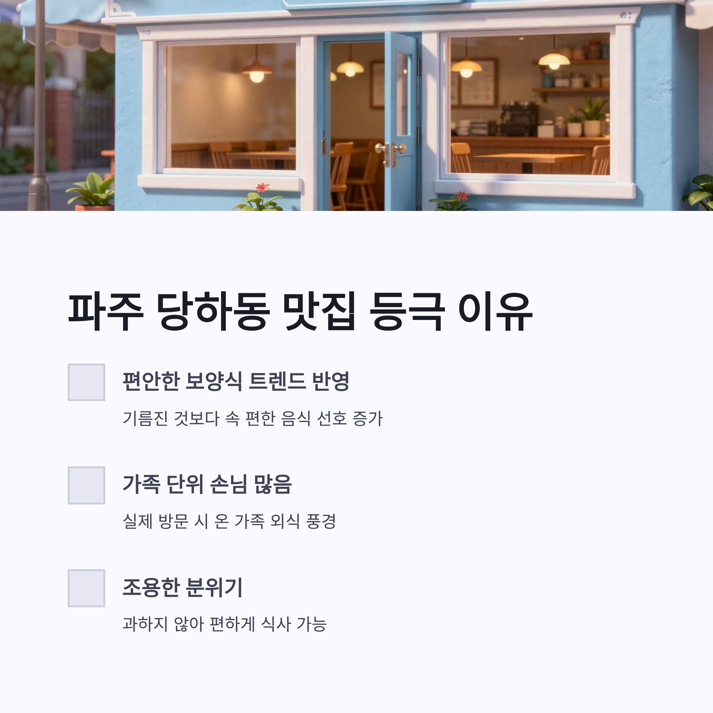 요즘 트렌드가 확실히 기름진 것보단 편하게 먹는 보양식 쪽으로 가는 느낌이잖아요. 풍천연화 장어수육이 딱 그 흐름이에요. 장점은 소화 잘 되고, 식사 후에 더부룩함이 거의 없다는 점! 단점이라면 구이 특유의 불향 좋아하는 분들에겐 살짝 심심할 수도 있어요. 그래도 어르신, 아이랑 같이 가기엔 진짜 무난했어요. 실제로 가족 단위 손님이 많더라구요. 파주 당하동에서 조용히 식사하기에도 분위기가 과하지 않아서 좋았구요.