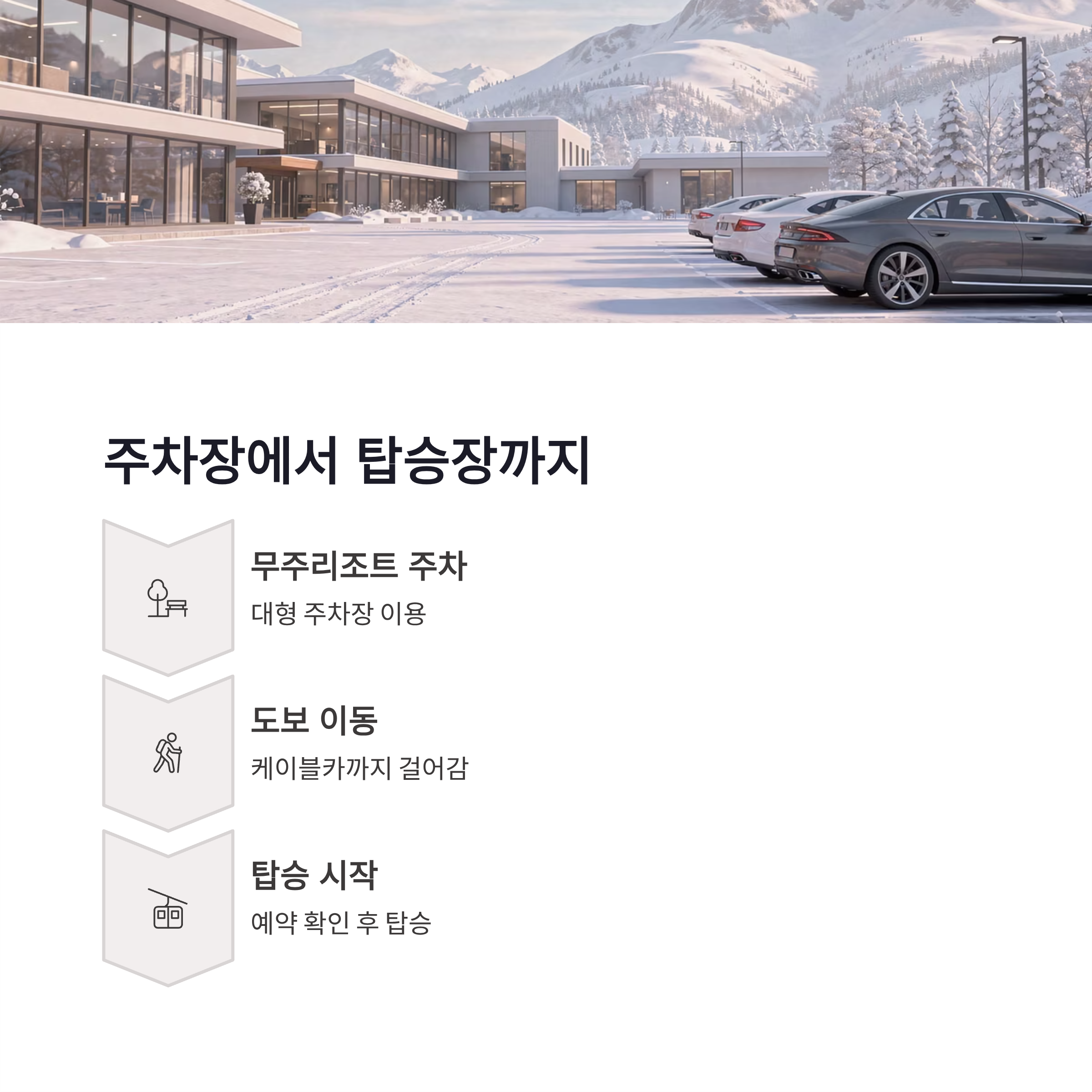 덕유산 케이블카 주차장은 무주리조트 쪽에 크게 마련돼 있는데요, 주말엔 오전 9시만 넘어도 만차 느낌 납니다. 저는 8시 조금 넘어서 도착했는데도 차가 꽤 있었어요. 주차장에서 케이블카 탑승장까지는 도보 이동이고, 눈 쌓인 날엔 바닥이 꽤 미끄러웠습니다. 진짜 체감 팁 하나 말하자면, 아이젠 없어도 되지만 미끄럼 방지 신발은 필수였어요. 향적봉까지 욕심내지 않아도, 케이블카 상부에서 보는 설경만으로도 충분히 값어치 했습니다.
