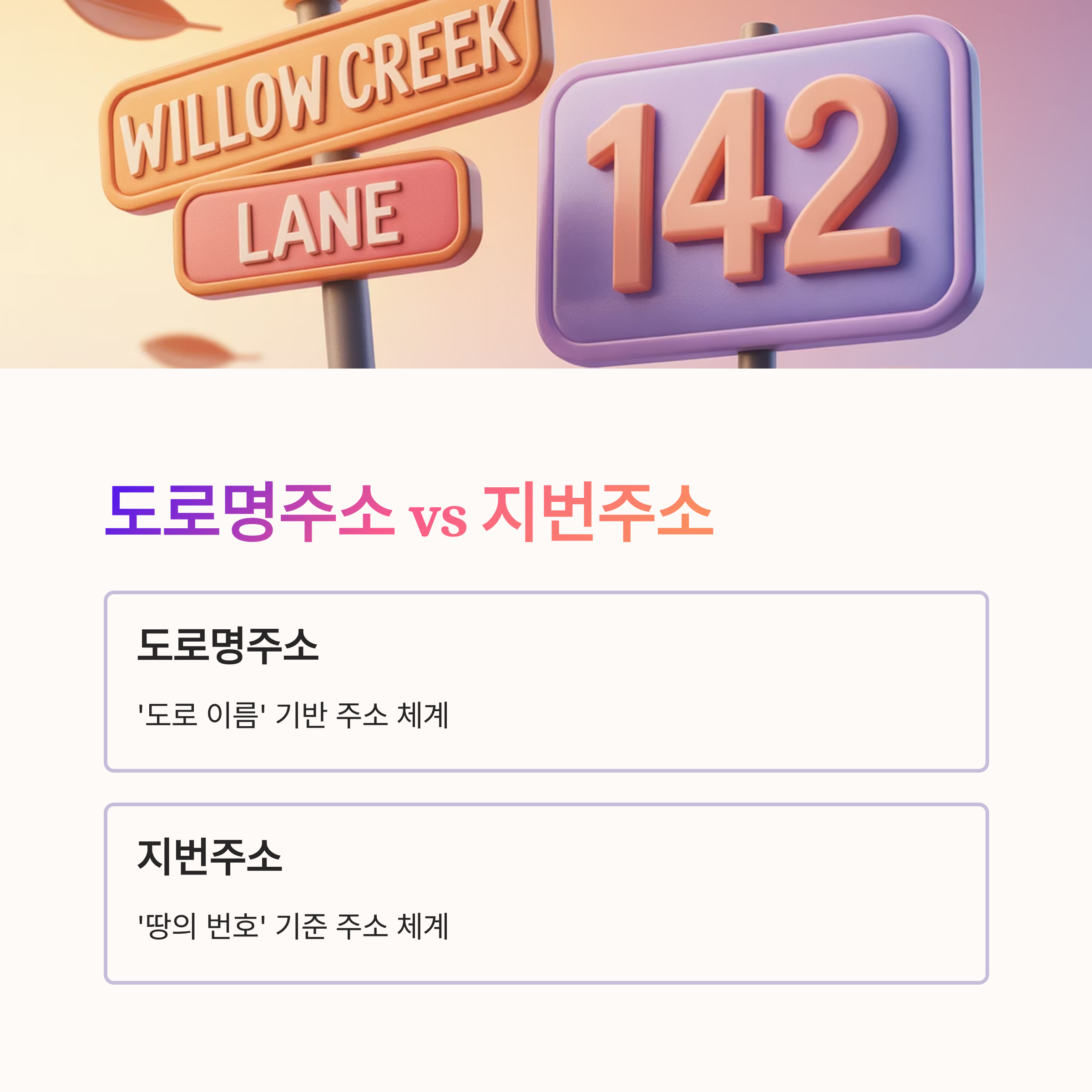 먼저, 도로명주소랑 지번주소 차이를 한번 짚고 넘어가야겠죠? 도로명주소는 쉽게 말해서 말 그대로 ‘도로 이름’을 기반으로 한 주소 체계에요. 그에 반해 지번주소는 땅의 ‘번호’를 기준으로 하죠. 왜 이 두 주소 체계를 알아야 하냐고요? 📬 부동산 정보를 찾거나, 택배 받을 때, 식당 예약할 때 등등 여러 상황에서 활용할 수 있으니까 필요합니다!