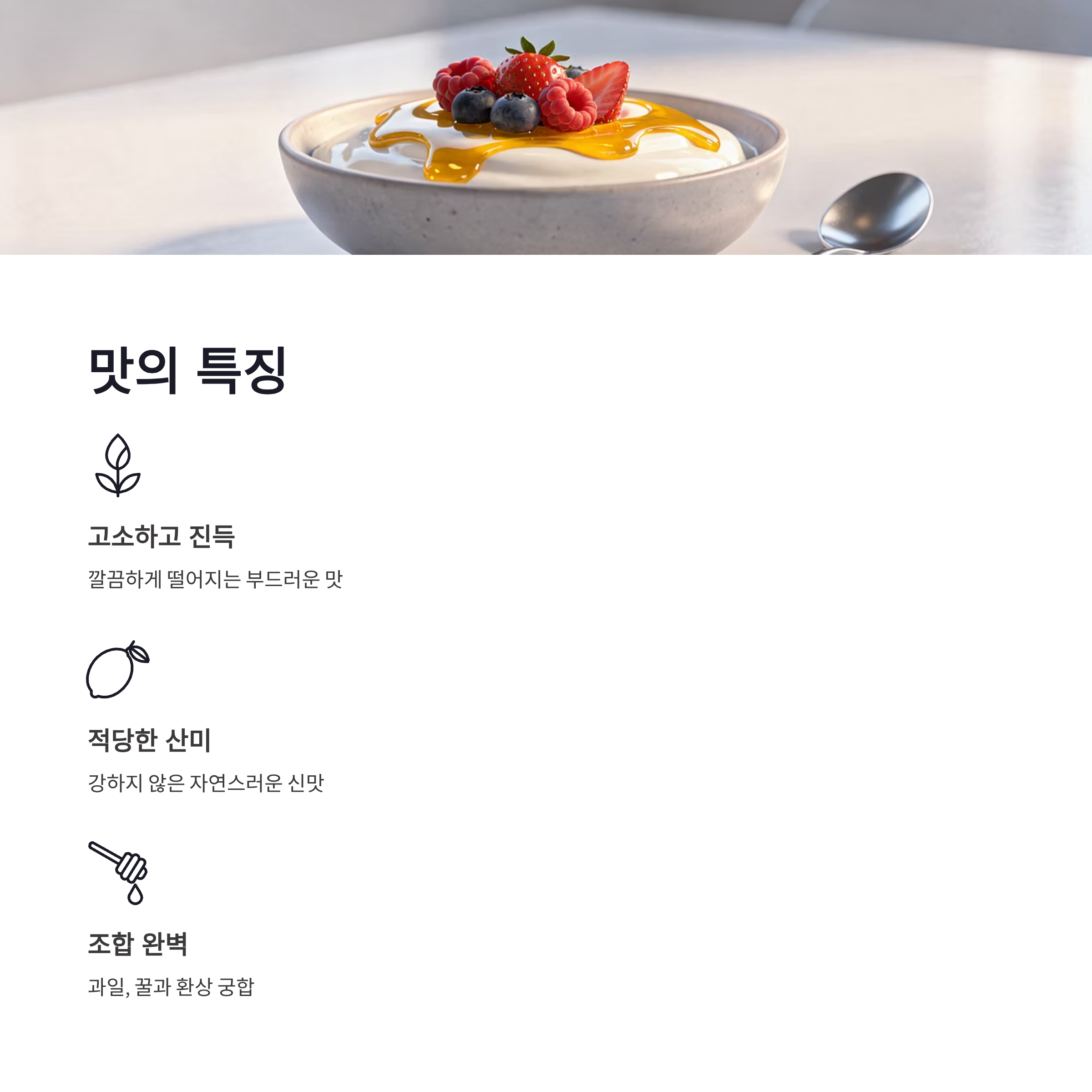 맛적으로는 산미가 강하지 않은데 적당히 진하고 크리미해서 그냥 먹어도 좋고 과일·꿀 조합도 잘 맞아요. 기존 한국 요거트보다 훨씬 *전통 발효 유산균 느낌*이 살아 있어서 요거트 덕후라면 한 번쯤 경험해볼 가치 있어요!