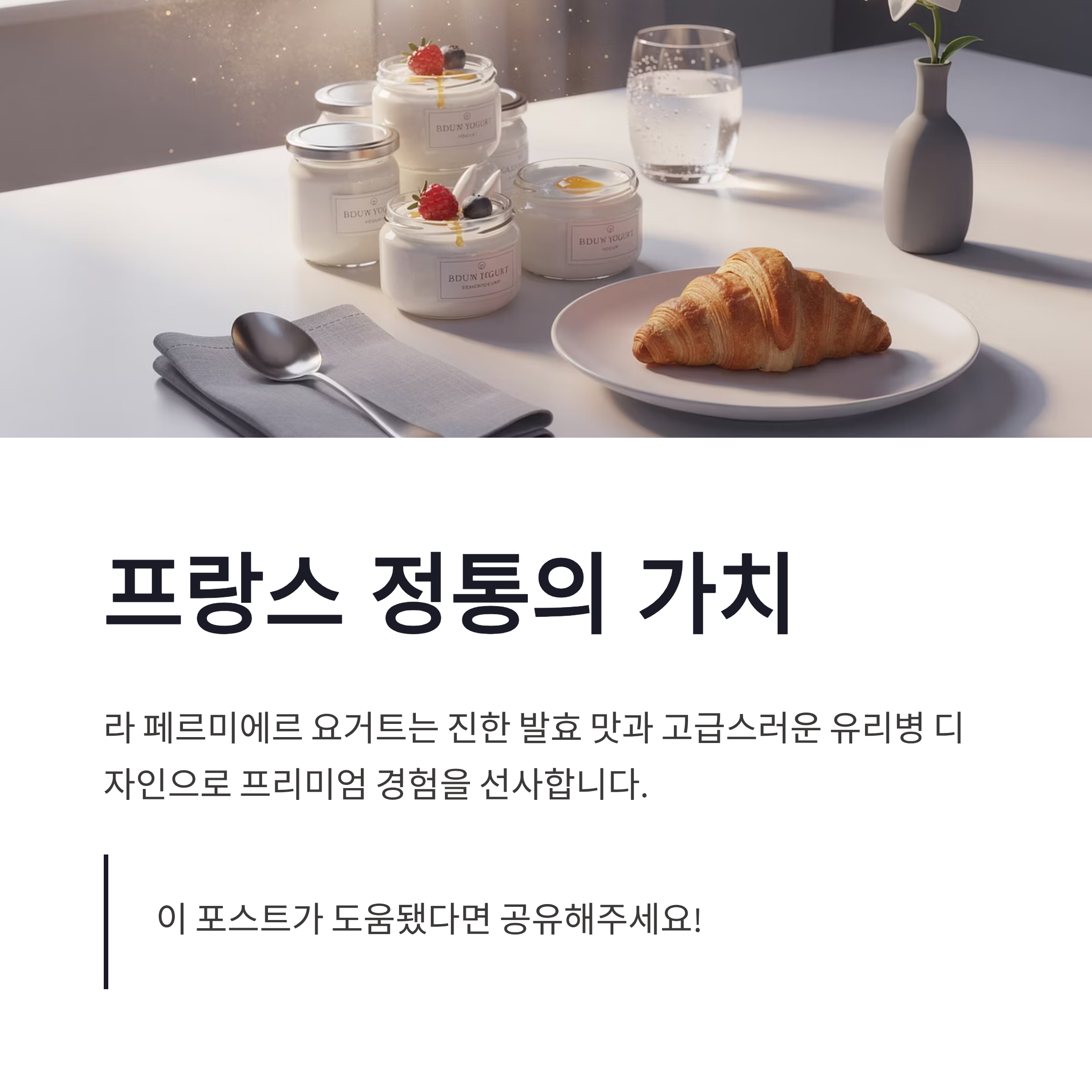 정리하면 라 페르미에르 요거트는 프랑스 전통 발효 방식으로 만든 프리미엄 요거트로, 감각적인 유리병 디자인과 진한 발효 맛이 특징이에요. 코스트코에서 비교적 합리적인 가격으로 만나볼 수 있고, 먹고 난 뒤 유리병 재활용 활용도가 높아 가성비 측면에서도 매력적이에요. 진하고 고급스러운 요거트를 찾는다면 이 제품 한 번 경험해보는 걸 추천합니다!