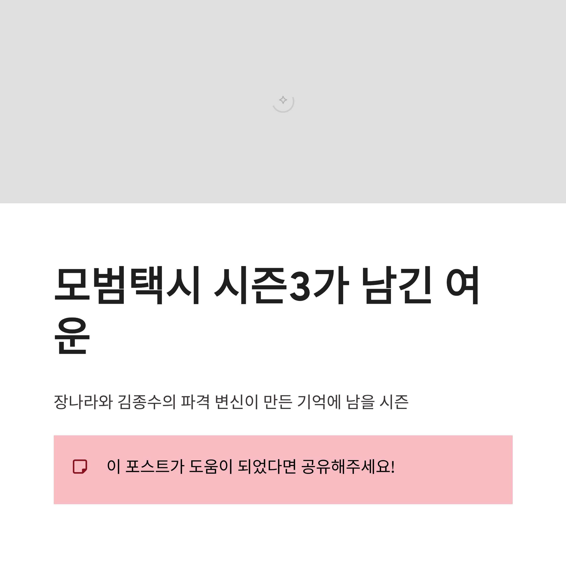 정리해보면 모범택시 시즌3의 핵심은 ‘누가 더 나쁜가’가 아니라 ‘악이 어떻게 진화했는가’ 같더라구요. 장나라의 이미지 파괴와 김종수의 묵직한 악역 조합이 시리즈 전체 결을 바꿔놨고, 덕분에 결말을 향한 긴장도 끝까지 유지되는 느낌이었어요. 개인적으로는 시즌 초반보다 후반으로 갈수록 이 두 인물이 더 무섭게 다가왔구요. 모범택시 시즌3, 가볍게 보기엔 생각할 게 은근 많았던 시즌이었습니다.