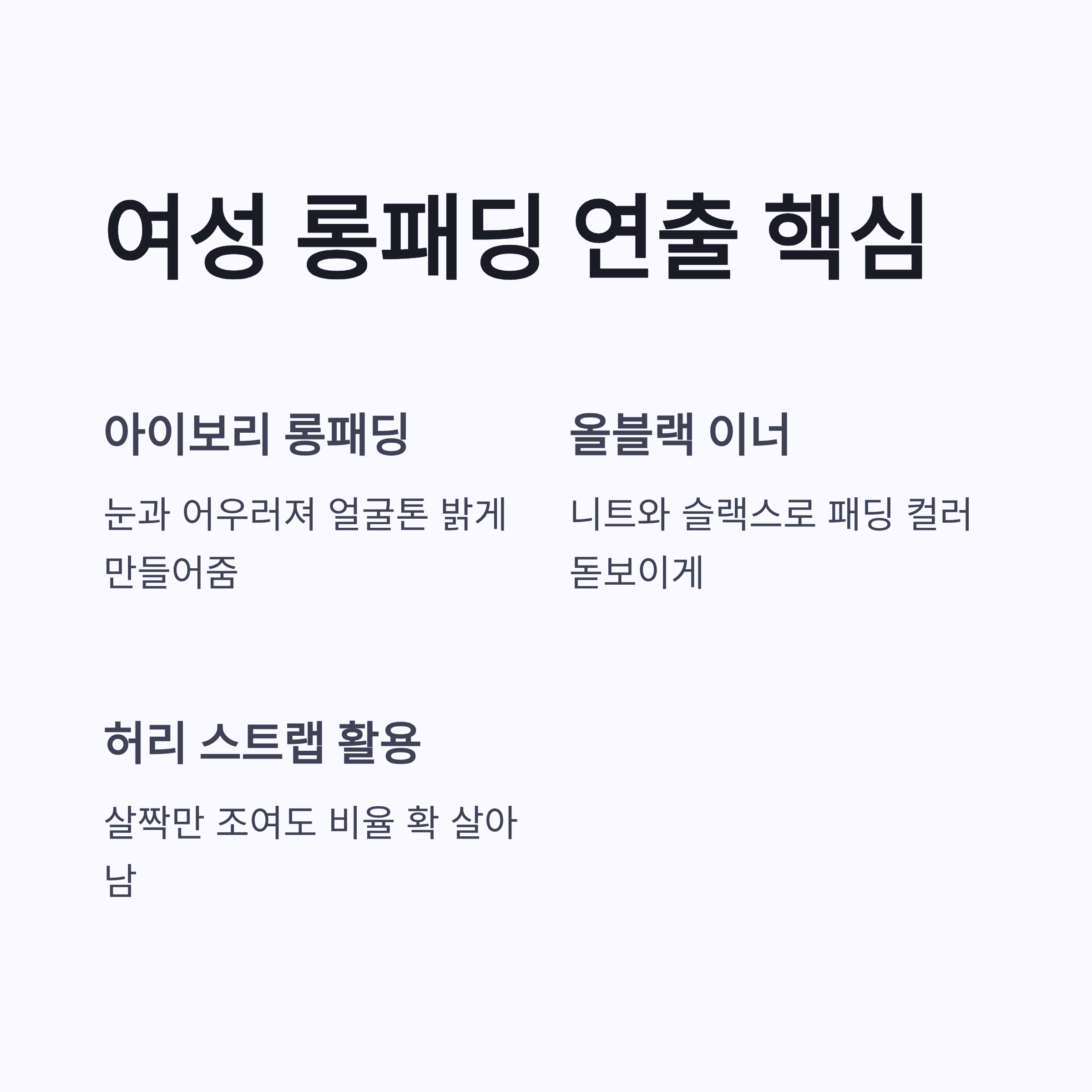 | 아이템 | 코디 포인트 | 체감 느낌 |