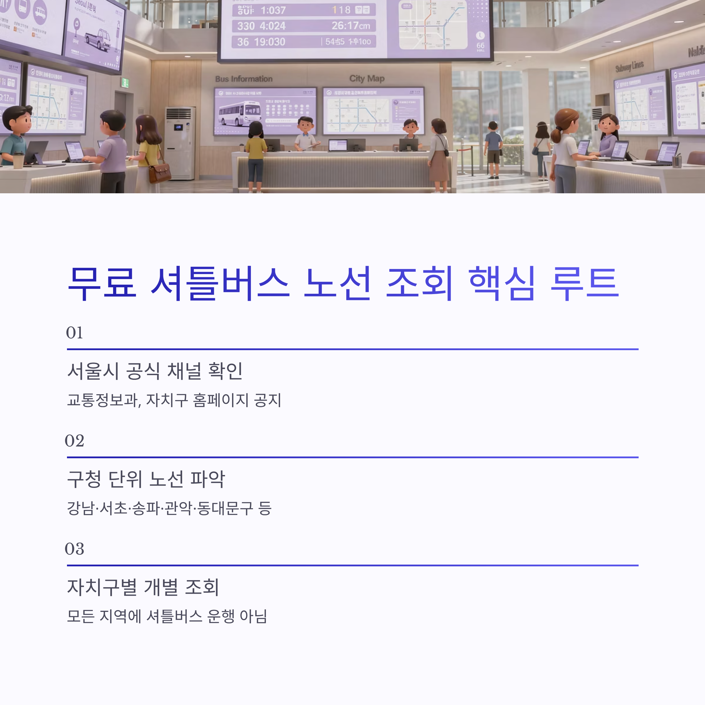 가장 먼저 확인해야 할 건 서울시 공식 채널이에요. 서울시 교통정보과, 각 자치구 홈페이지에 무료 셔틀버스 노선 조회 공지가 올라옵니다. 특히 강남구, 서초구, 송파구, 관악구, 동대문구처럼 출퇴근 수요 많은 지역은 구청 단위로 셔틀버스 노선을 따로 운영하는 경우가 많았어요.