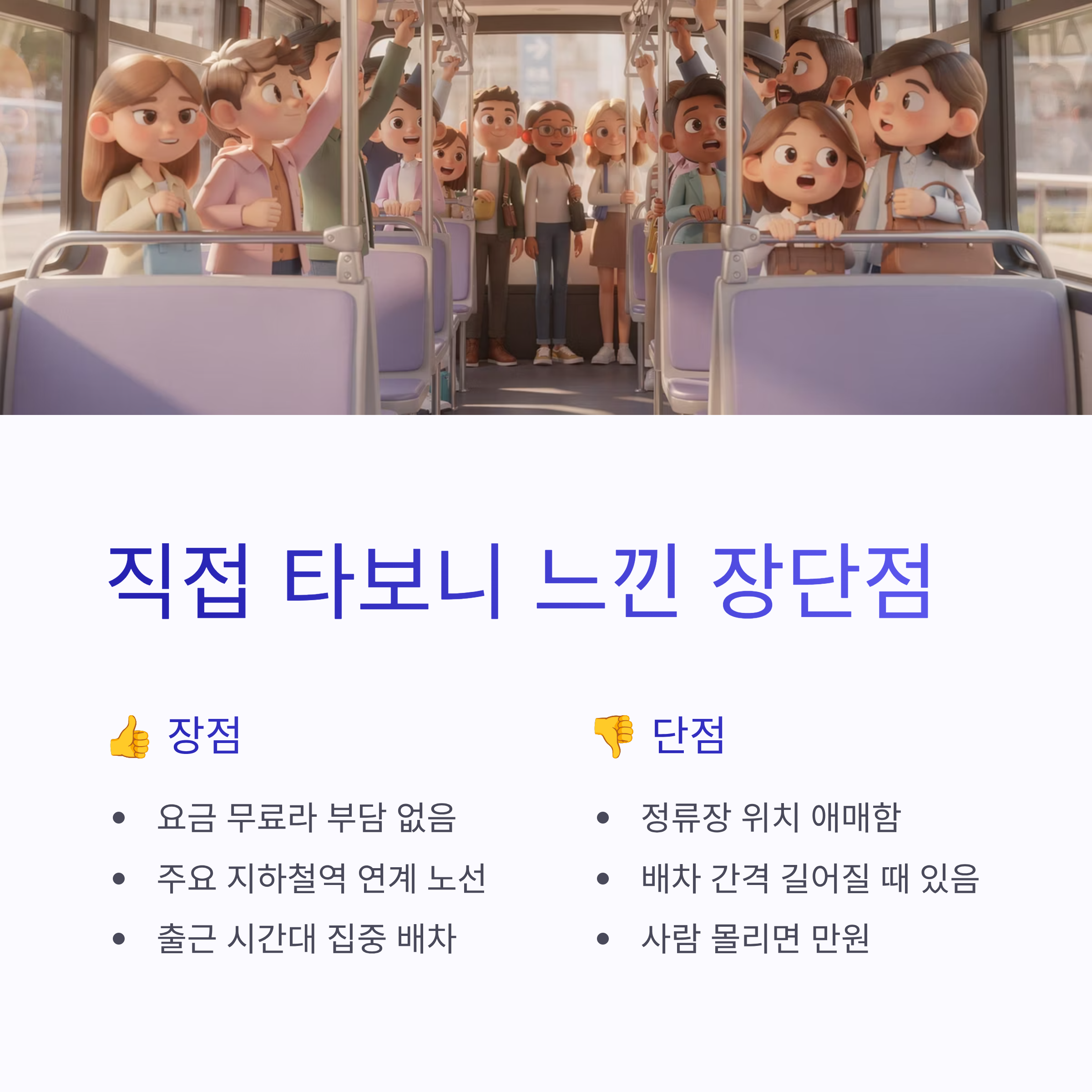 * 요금 무료라 부담 없음 * 주요 지하철역 연계 노선 위주 * 출근 시간대 집중 배차