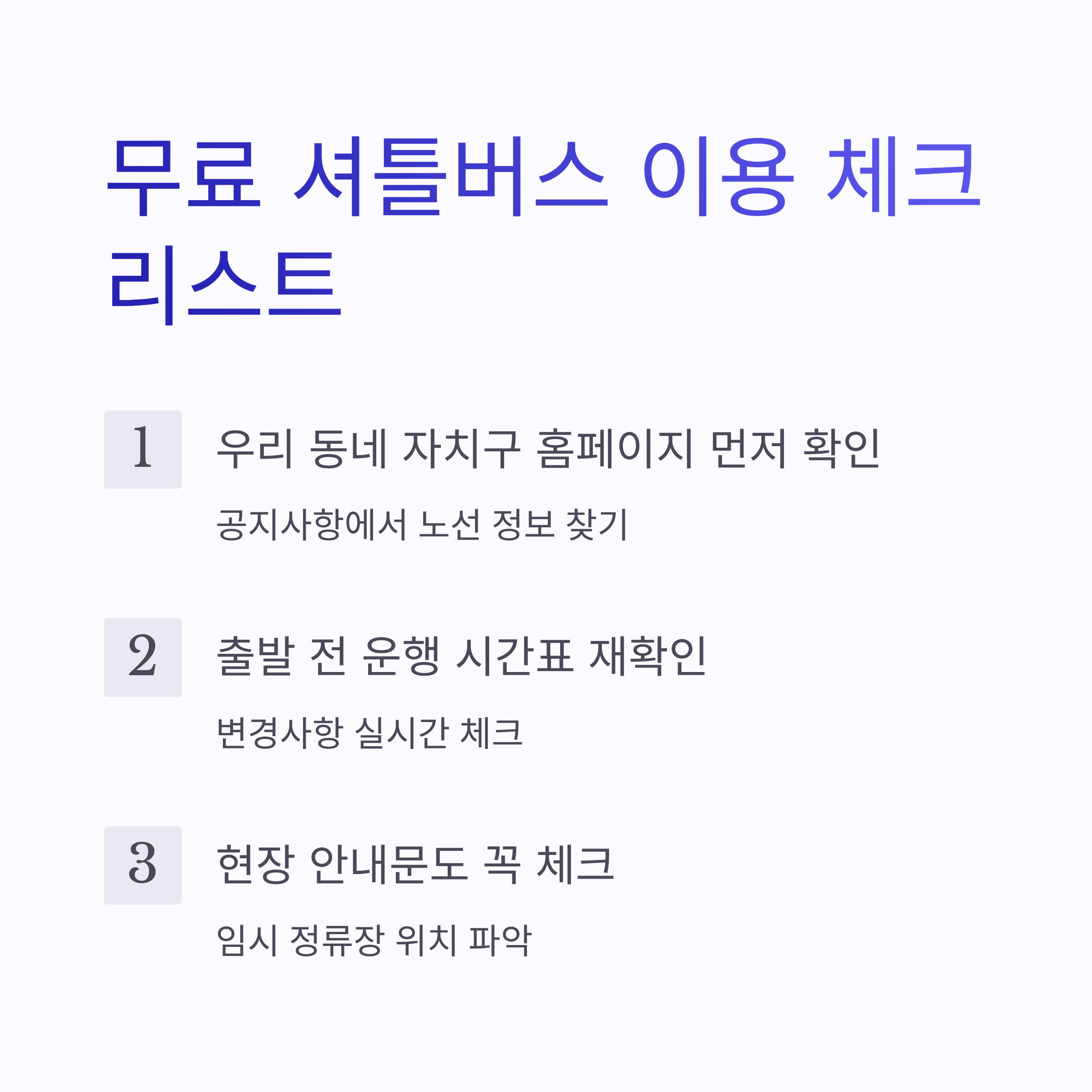 정리하면 이거예요. 1️⃣ 우리 동네 자치구 홈페이지 먼저 확인 2️⃣ 출발 전 운행 시간표 재확인 3️⃣ 현장 안내문도 꼭 체크