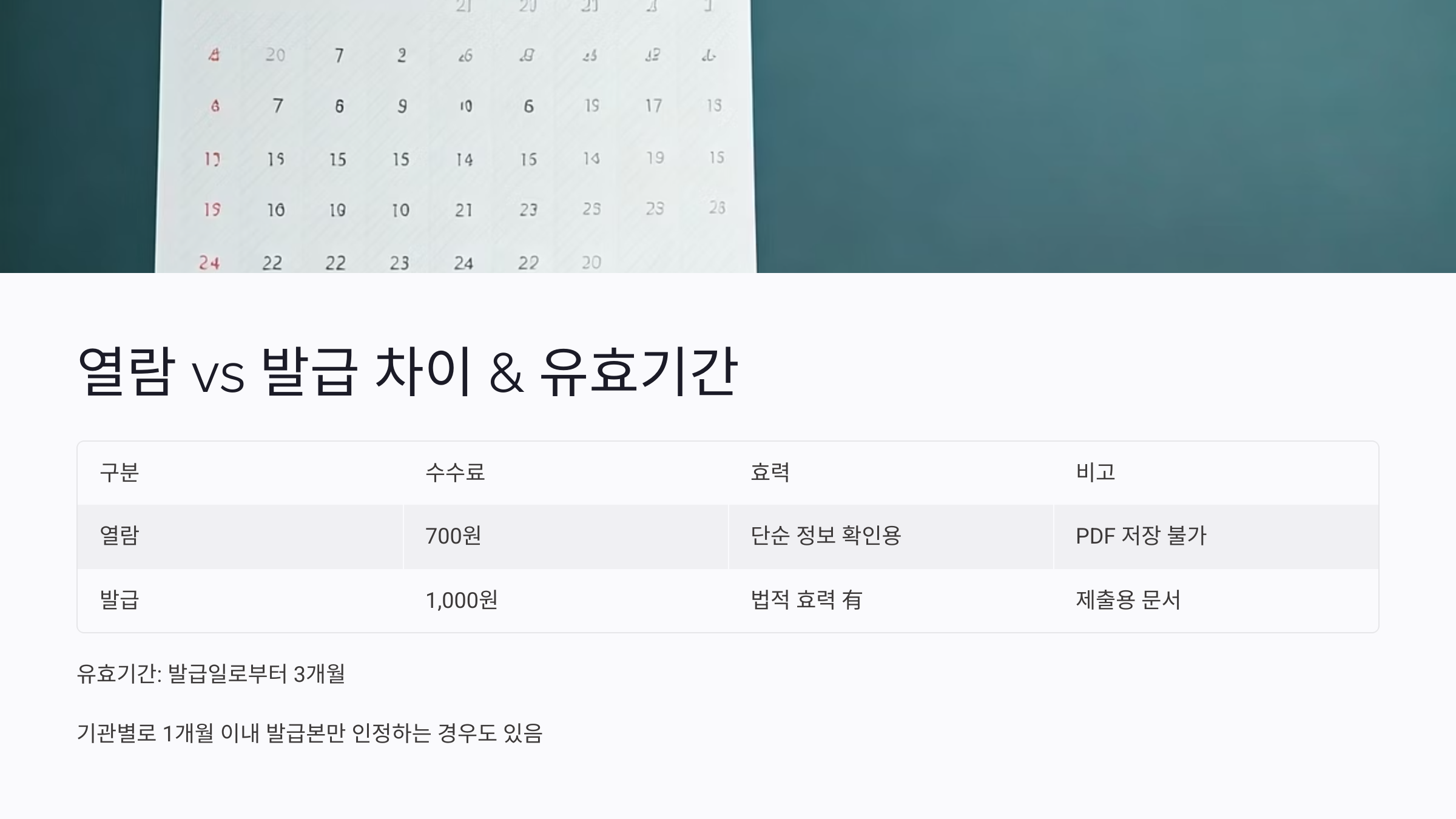 3. 열람 vs 발급 차이 & 유효기간