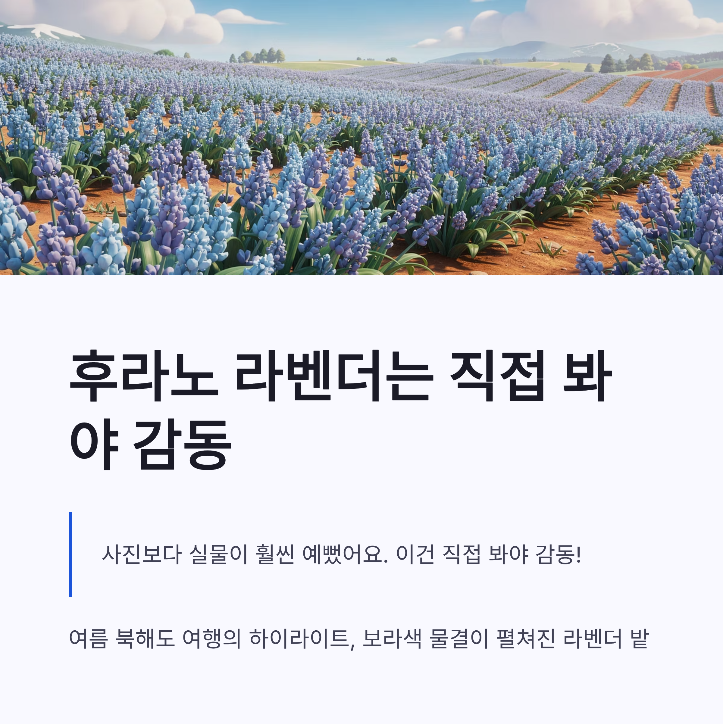 제가 여름 북해도 여행 갔을 때 후라노 라벤더는… 와 진짜 사진보다 실물이 훨씬 예뻤어요. 이건 직접 봐야 감동ㅠㅠ 그리고 삿포로 맥주랑 징기스칸은 밤마다 생각나요 ㅋㅋ 북해도 여행은 먹다가 살찌는 일정이 기본값입니다.
