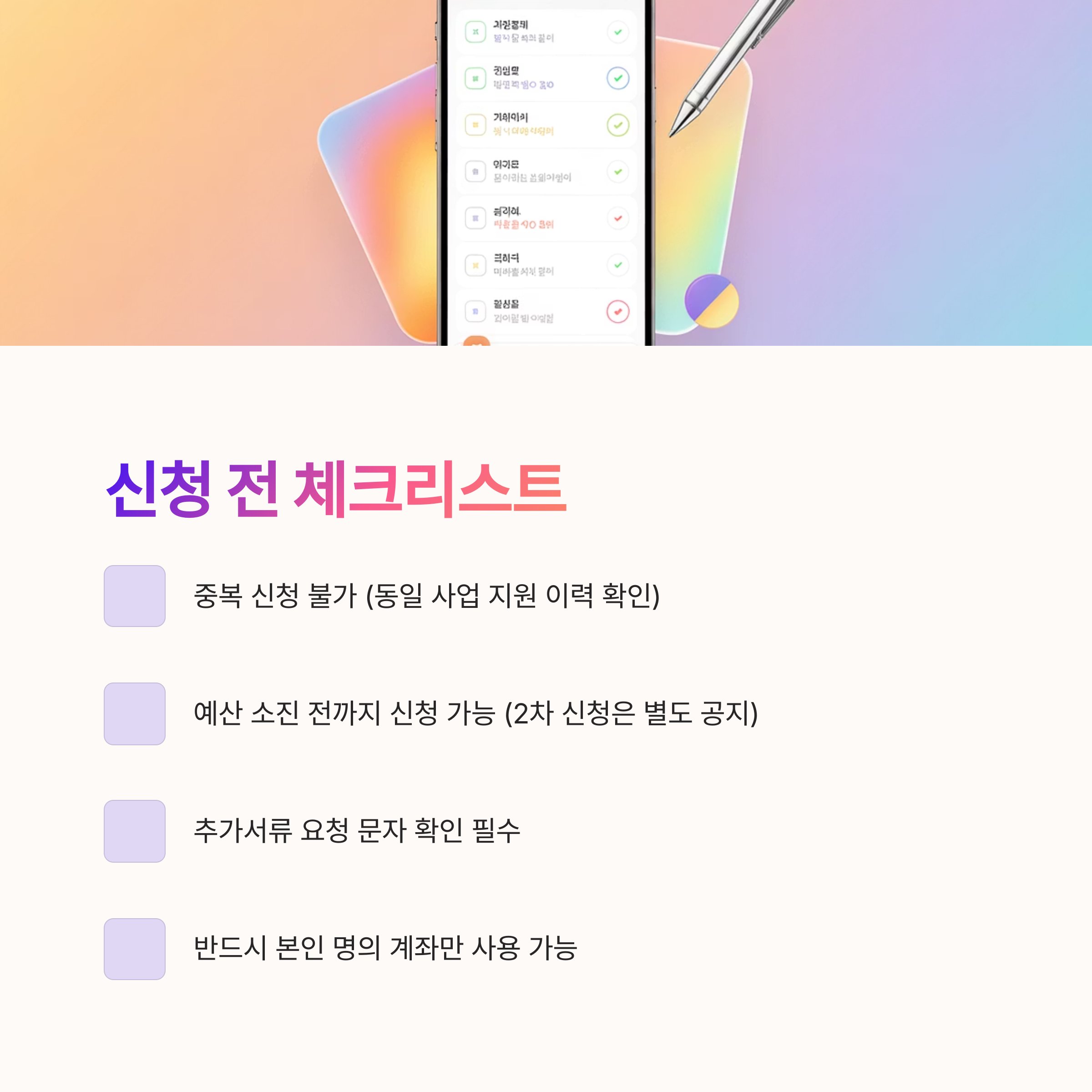 - ✅ 중복 신청 불가 – 동일 사업 지원 이력 있는 경우 제외될 수 있음
