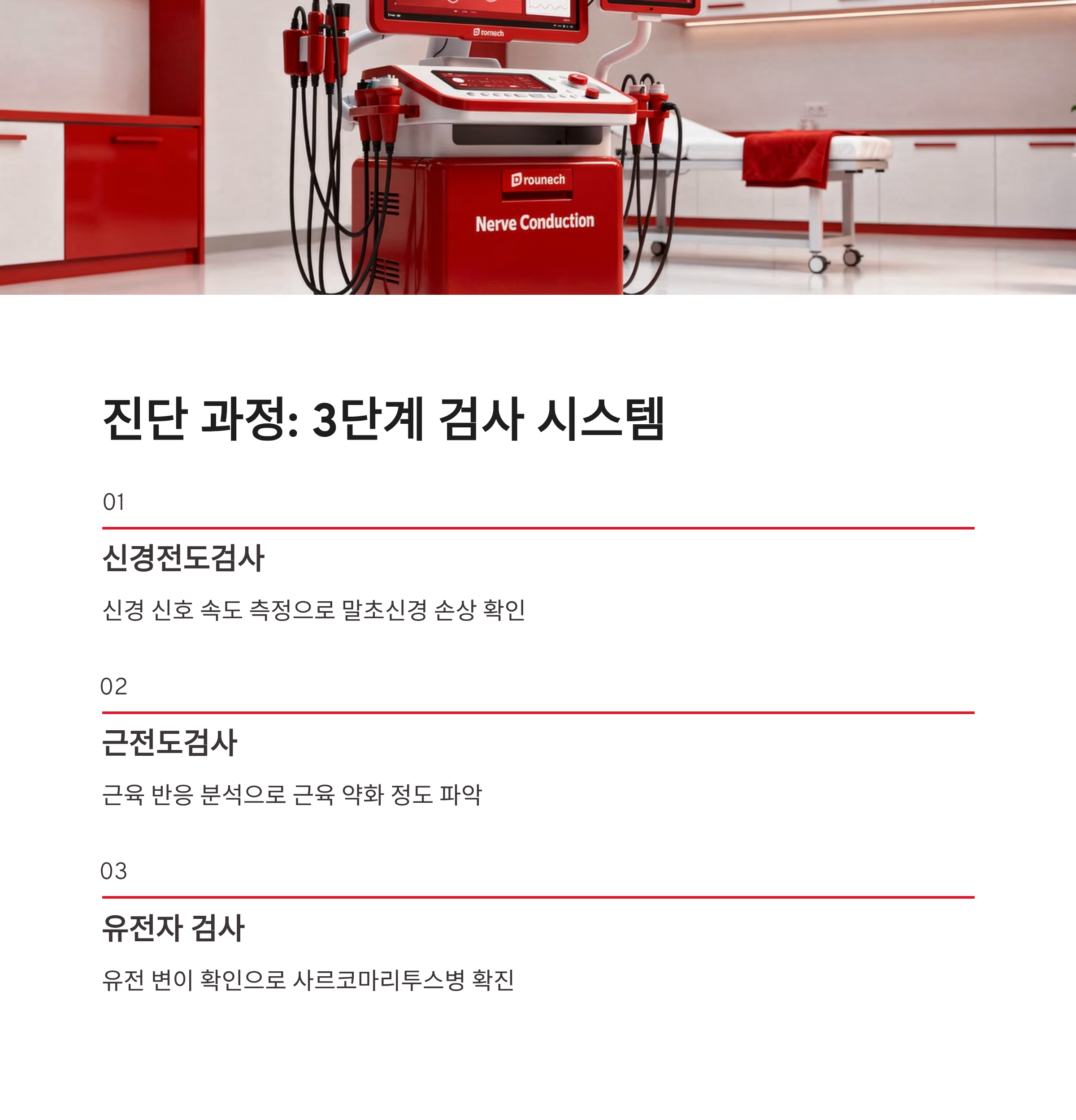 병원 가면 뭘 하냐면요, 생각보다 단계가 체계적이었어요. 사르코마리투스병 검사는 증상 설명부터 시작해서 신경전도검사, 근전도검사로 이어집니다. 전기 자극 주는 검사라 살짝 불편하긴 한데, 결과는 꽤 명확했어요. 그리고 요즘은 유전자 검사가 거의 필수처럼 들어가더라구요. 2025년 기준으로 국내 대학병원 기준 진단 정확도가 90% 이상이라고 합니다.