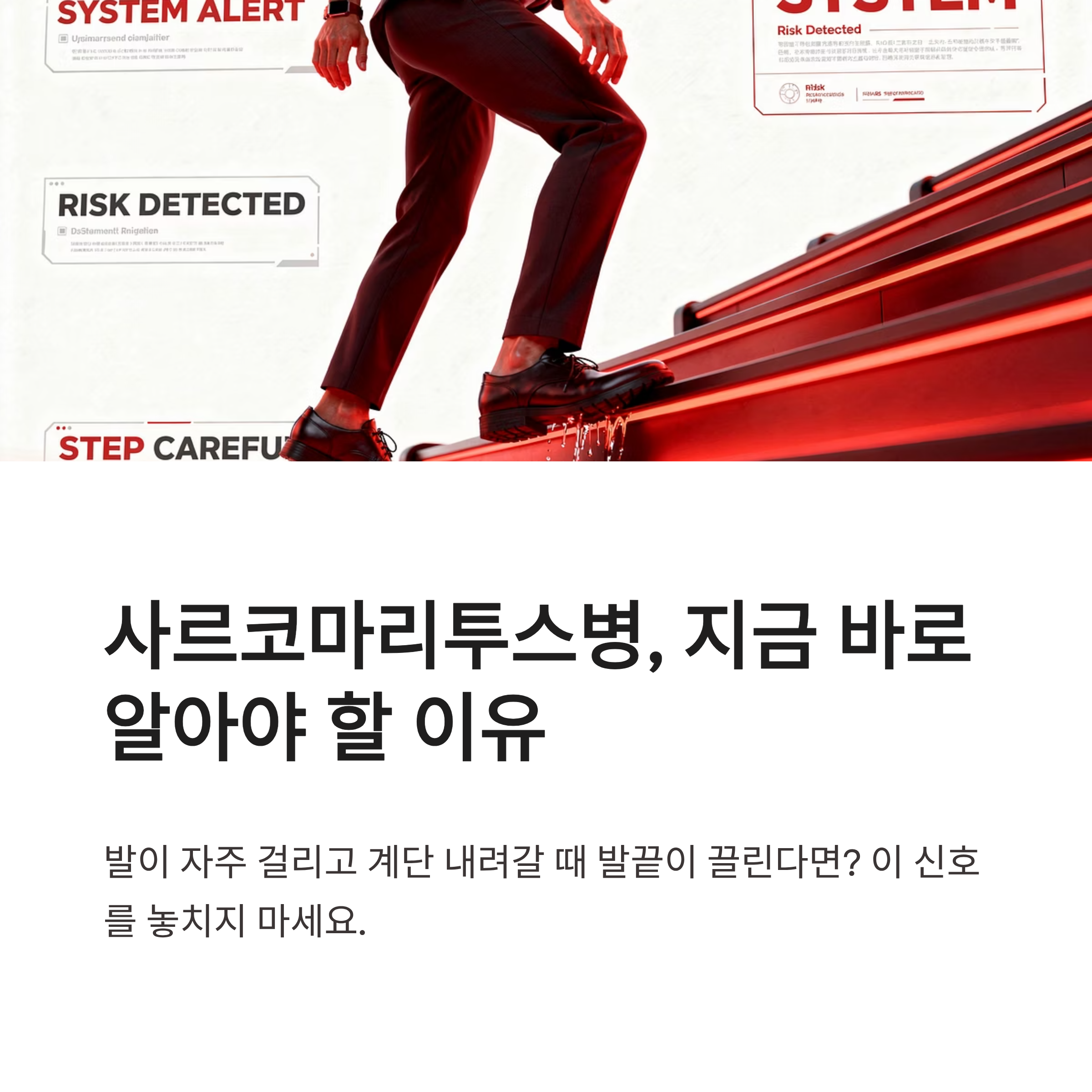 #사르코마리투스병 #사르코마리투스병증상 #사르코마리투스병검사 #사르코마리투스병치료 #유전성근육질환 #말초신경질환 #희귀질환정보 #신경근육질환 #보행이상 #발목약화 #손힘약화 #유전자검사 #재활치료 #조기진단중요 #건강정보