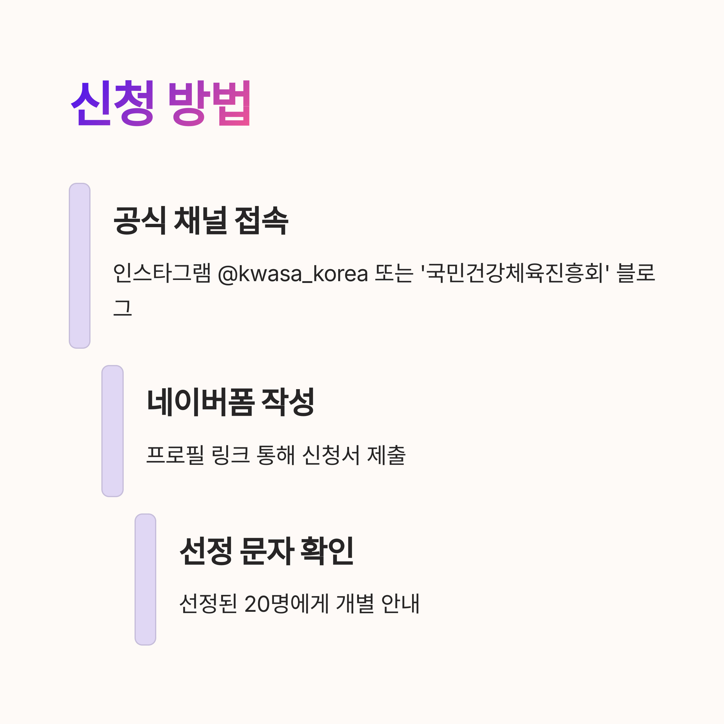 인스타그램@kwasa_korea또는 네이버 블로그 방문 - 신청 링크 클릭 → 네이버폼 작성