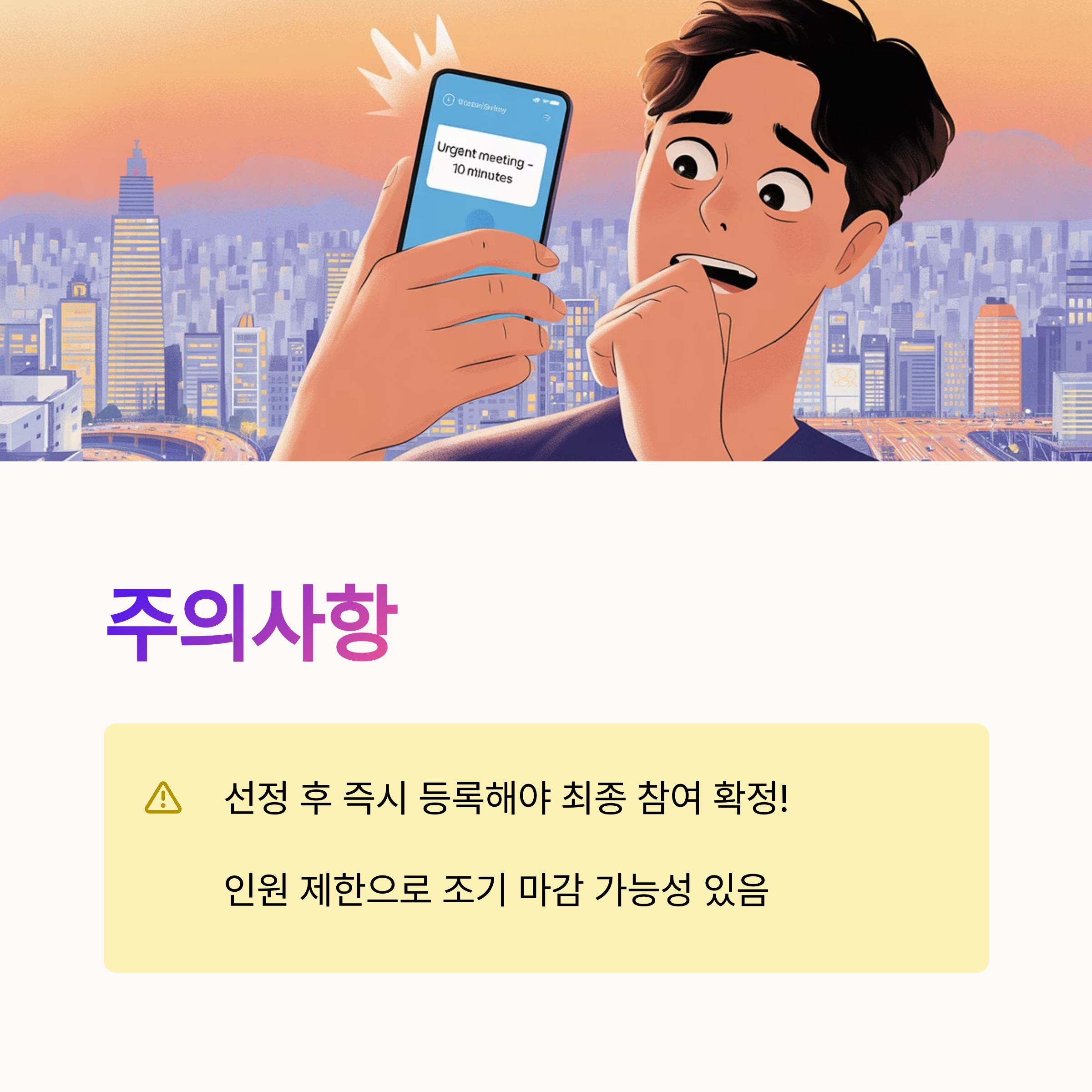주의사항: 문자 받았다고 끝이 아닙니다! 시설 등록까지 완료해야 최종 확정됩니다. 문자 받으면 바로 움직이세요!