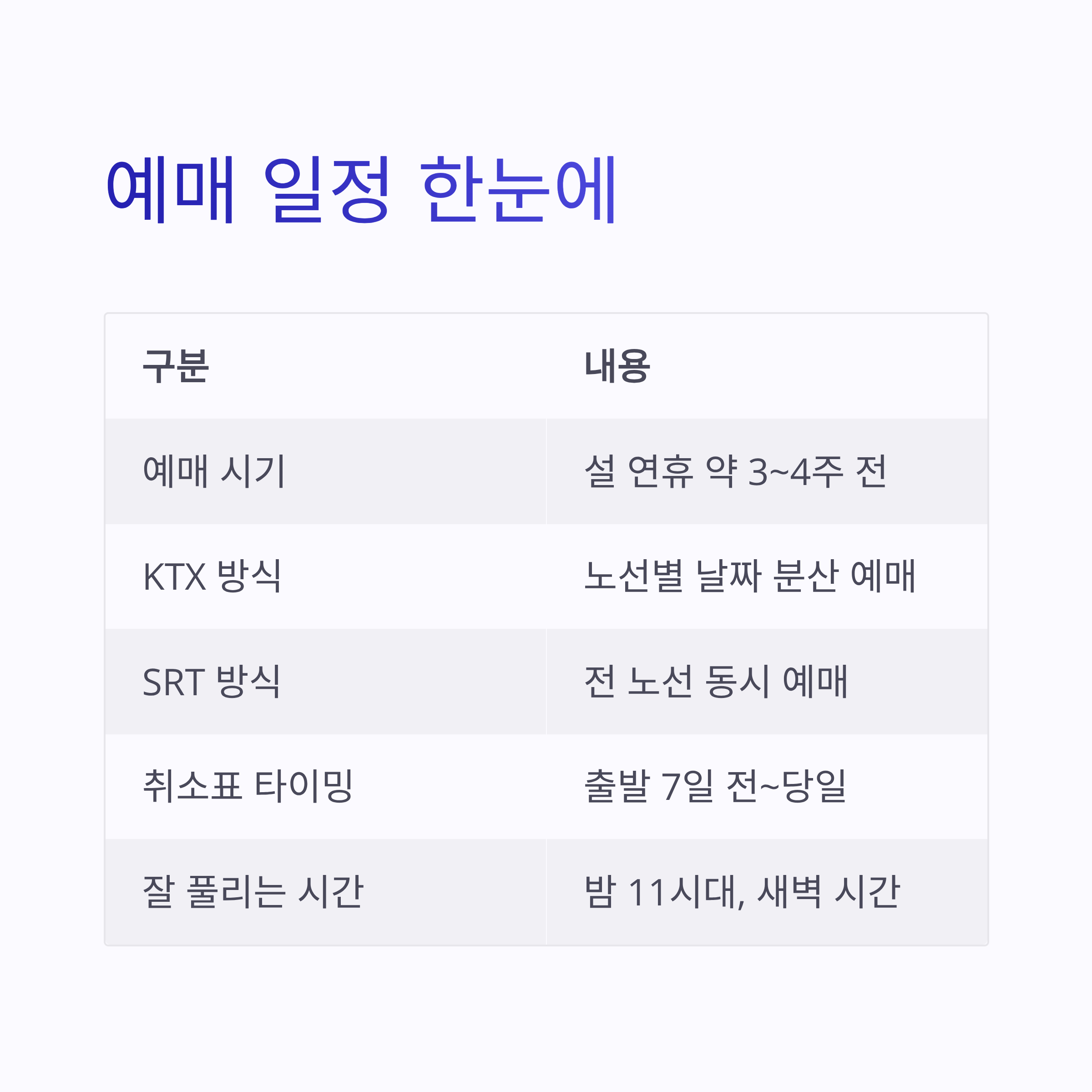 | 예매 시기 | 설 연휴 약 3~4주 전 |