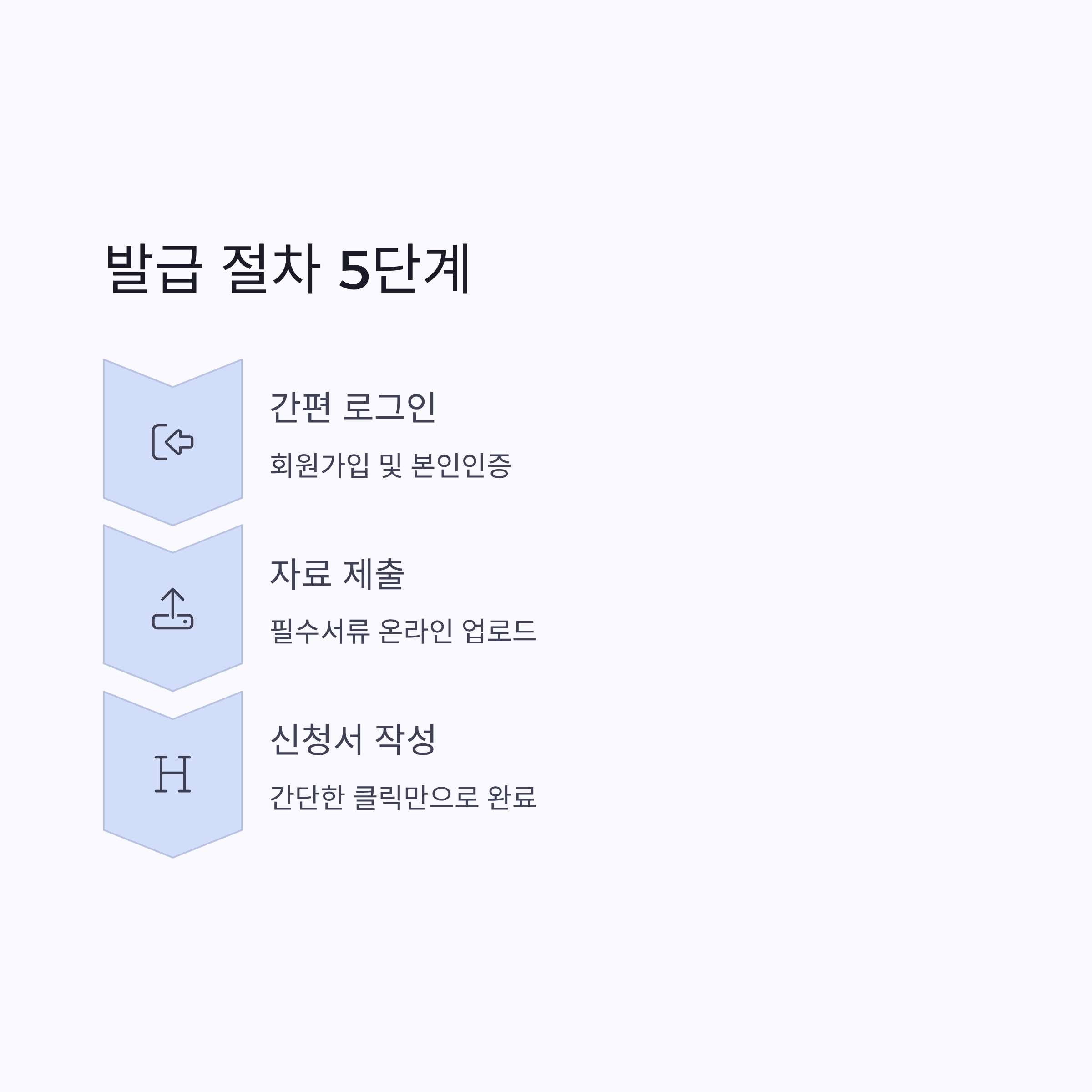 온라인 발급은 회원가입, 본인인증, 필수자료 제출, 신청서 작성의 단계로 이루어지며, 평균 10분 이내에 완료 가능합니다. 오프라인의 경우 방문이 필요하여 시간이 더 소요됩니다. 필수 제출서류로는 최근 3개년 재무제표, 조정후 수입금액 명세서 등이 요구됩니다 [5].
