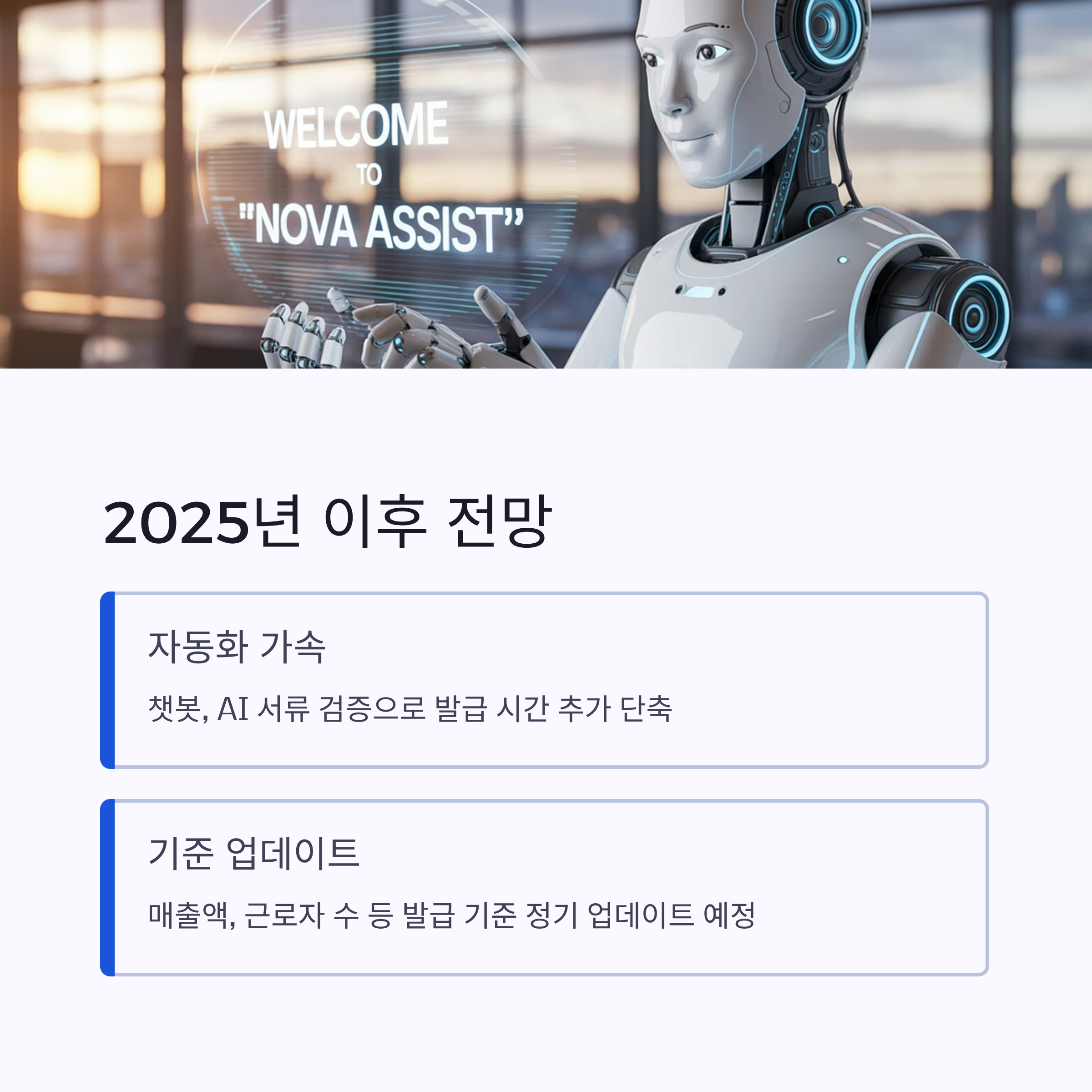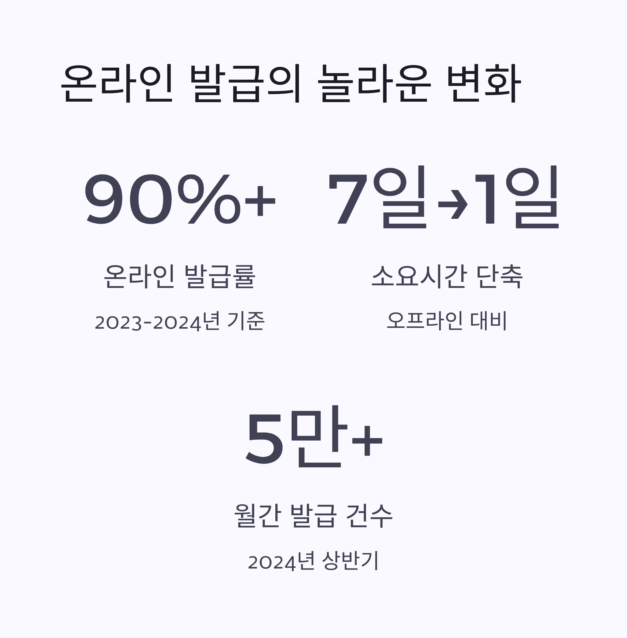 온라인 시스템은 연중무휴 24시간 이용 가능하며, AI를 통한 자동화 검증 등을 통해 발급 시간이 지속적으로 단축될 예정입니다 [3][5][6]. 간편장부 대상자는 일부 서류 제출이 생략되어 절차가 더욱 단순해졌습니다 [1].