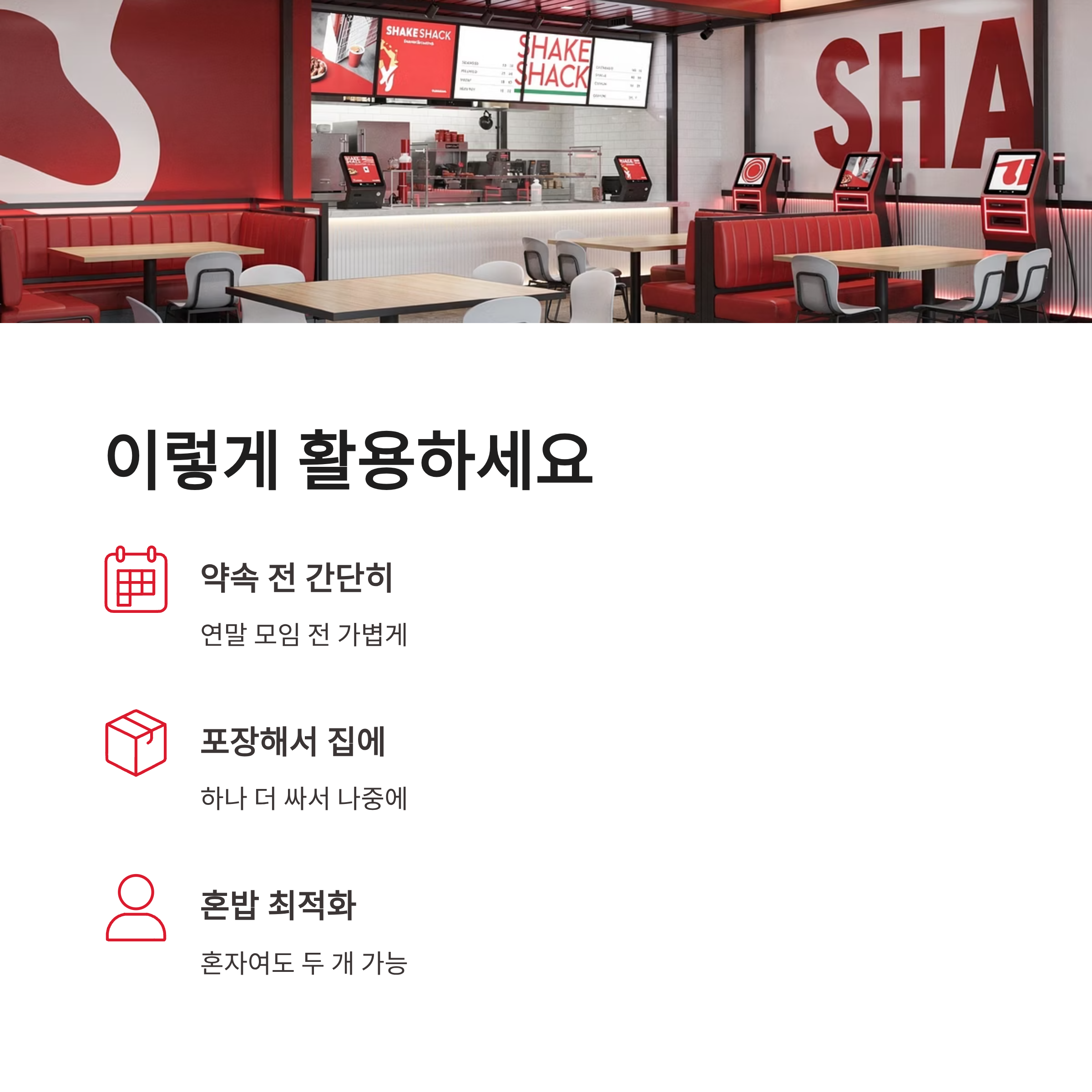 | 행사 메뉴 | 쉑버거 단품 |