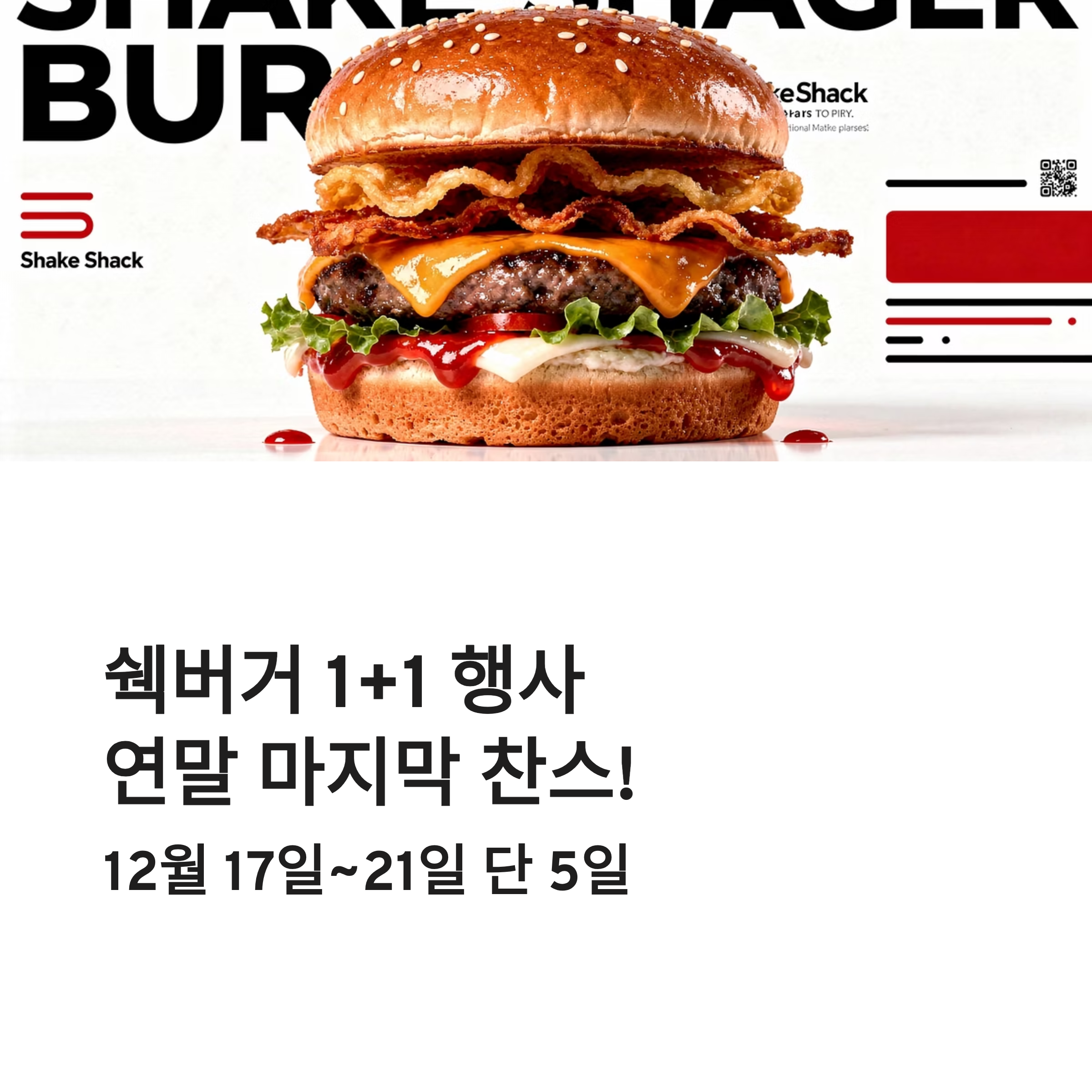 #쉑버거1플러스1 #쉑버거1+1 #쉐이크쉑행사 #쉑버거행사 #2025연말이벤트 #쉐이크쉑할인 #쉑버거단품 #햄버거행사 #연말외식 #가성비버거 #쉐이크쉑추천 #연말먹거리 #패스트푸드행사 #버거이벤트 #연말혜택