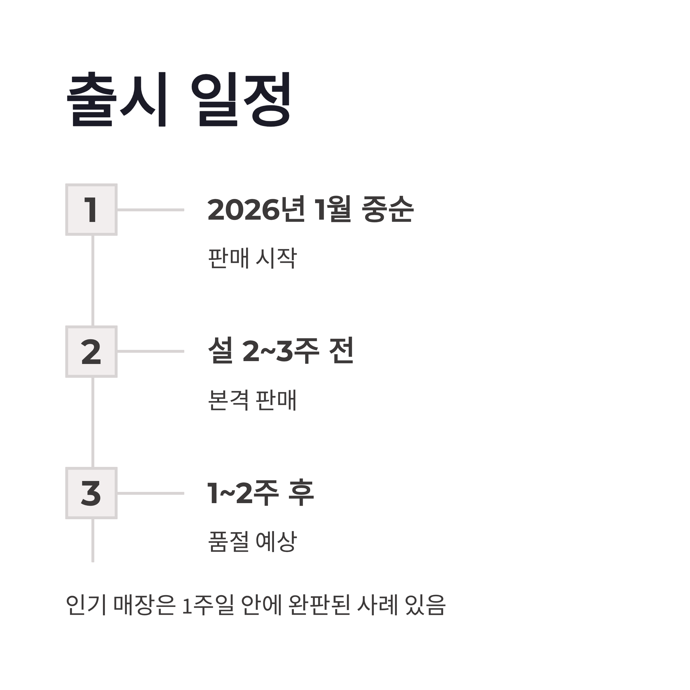 | 판매 시작 | 2026년 1월 중순 | 설 2~3주 전 |