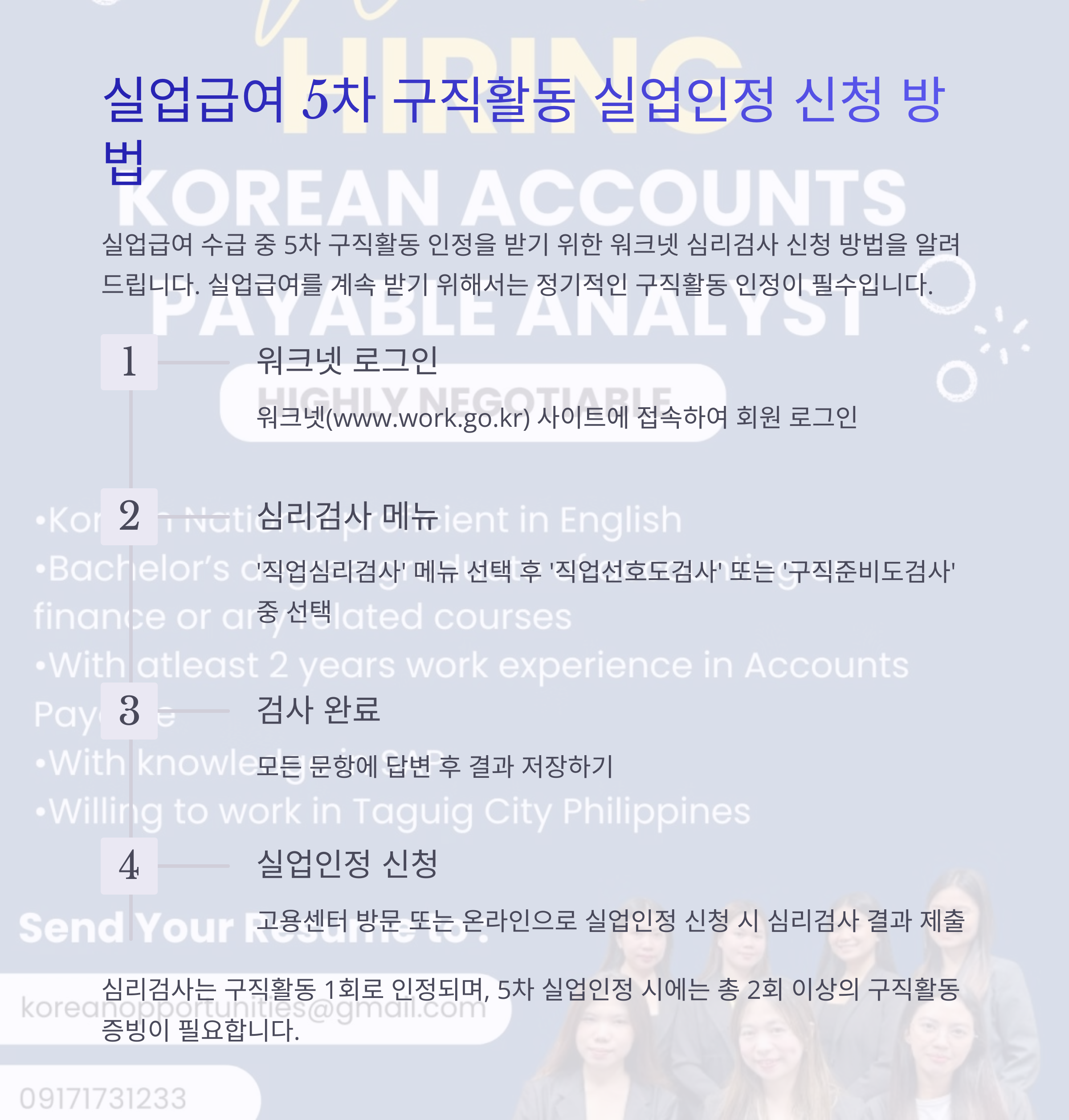 - ✅ 실업급여 5차부터는 구직활동 2회 필수