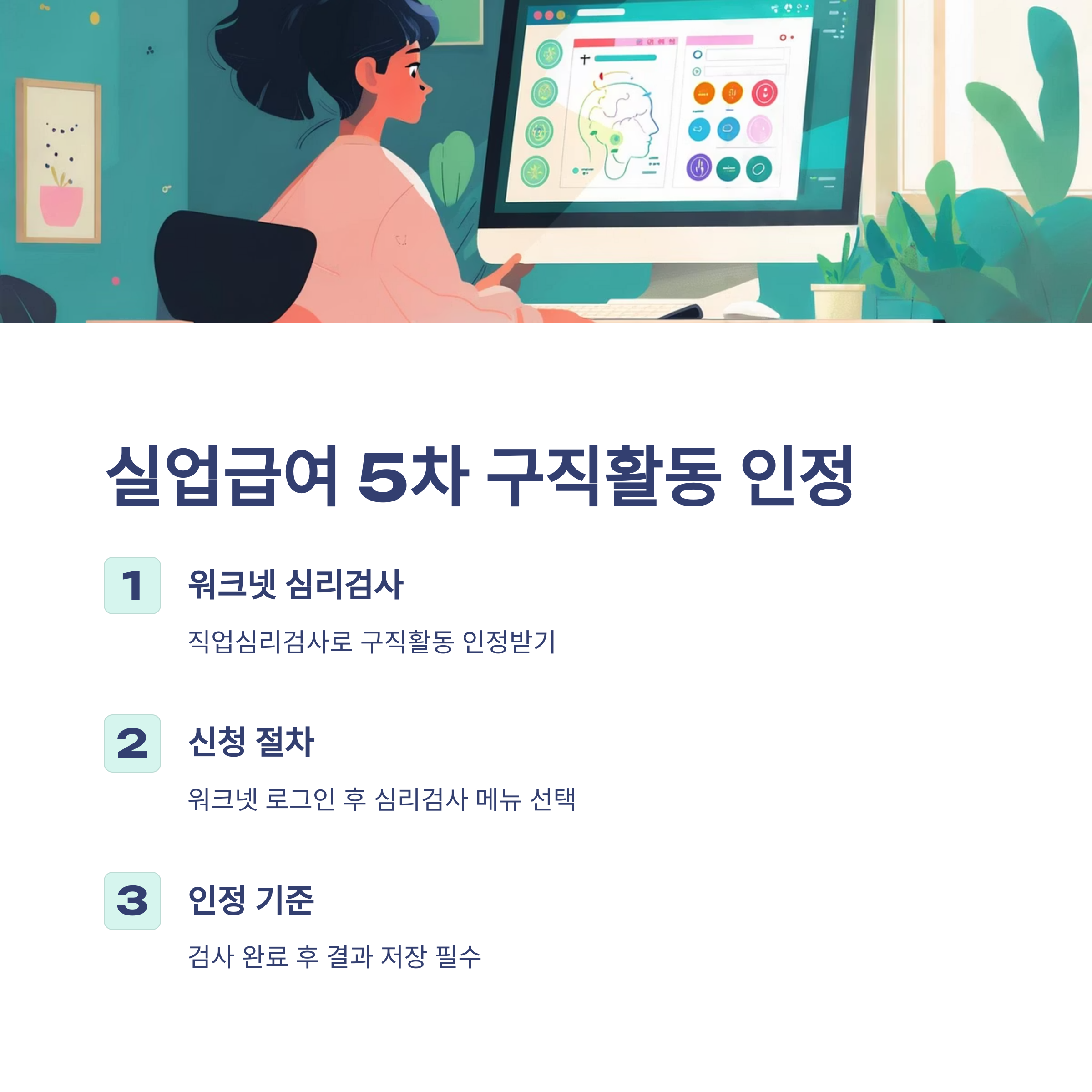 워크넷 심리검사는 구직 외 활동 1회로 인정되므로, 나머지 1회는 입사지원 등 직접적인 구직활동이 필요합니다.