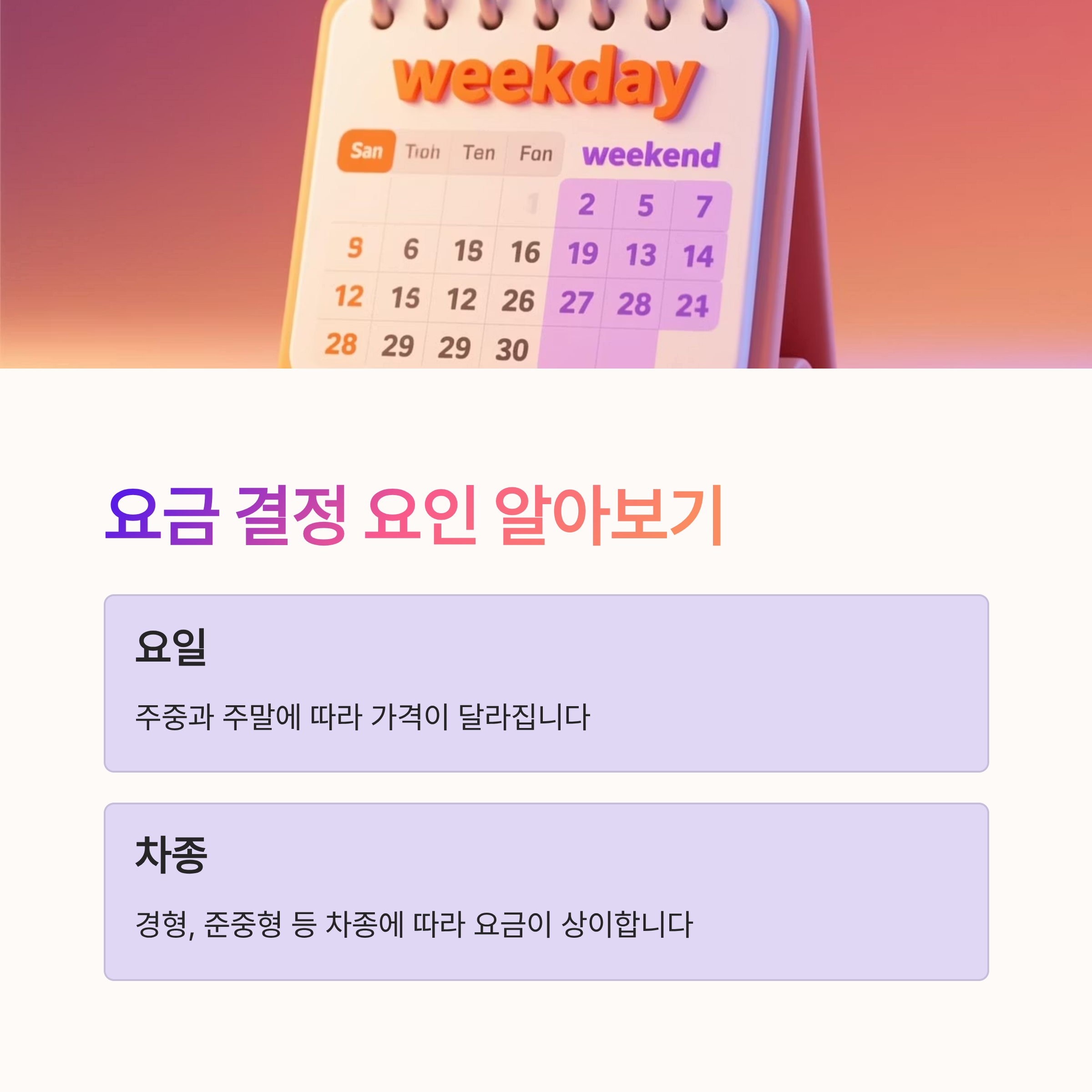 | 차종 | 주중 요금 (원) | 주말 요금 (원) |
