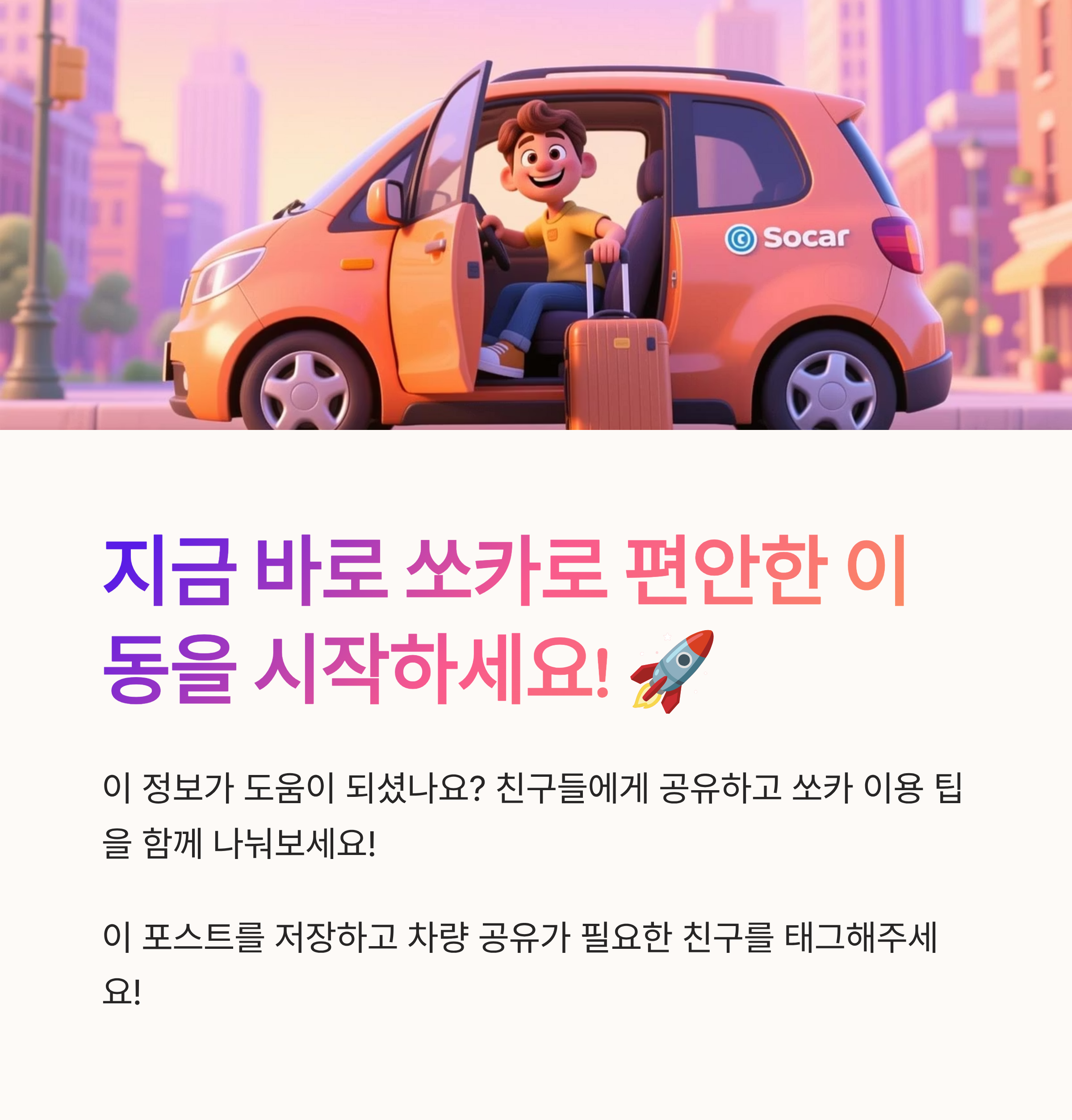 자, 이제 쏘카 이용 요금에 대한 궁금증이 조금은 해소되셨길 바라요. 주말이든 주중이든, 쏘카로 편안한 이동 시간 되시길 바랄게요! 🙌