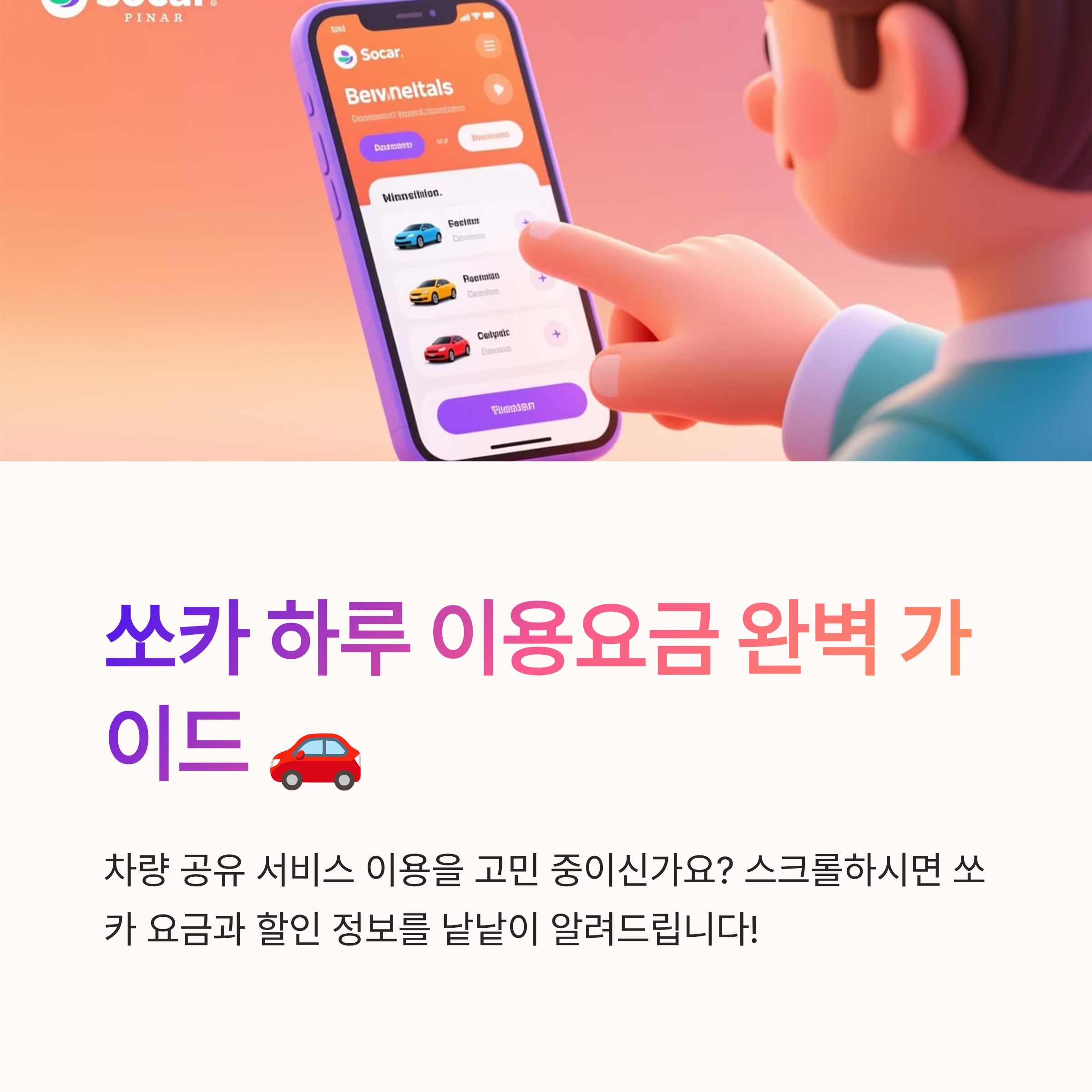 안녕하세요! 쏘카 이용을 고민 중이신가요? 요즘 많은 분들이 차량 공유 서비스를 이용하구 계시죠? 오늘은 쏘카 하루 이용요금과 할인 정보를 낱낱이 파헤쳐 보려 합니다! 이 글을 읽고 나면, 쏘카 이용을 한층 더 똑똑하게 할 수 있을 거예용!