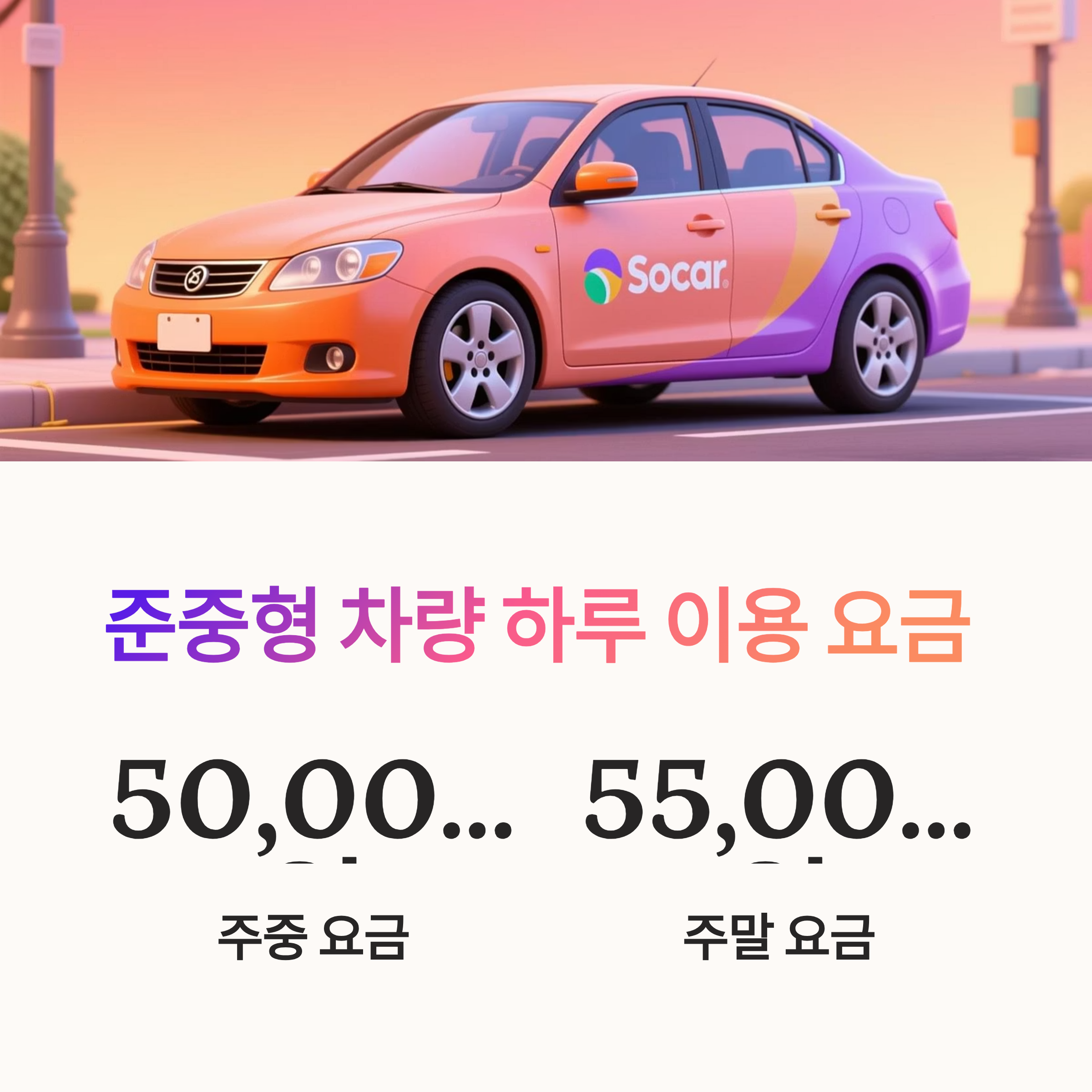 2. 쏘카 차종별 하루 이용 요금 (경형, 준중형) 🚙