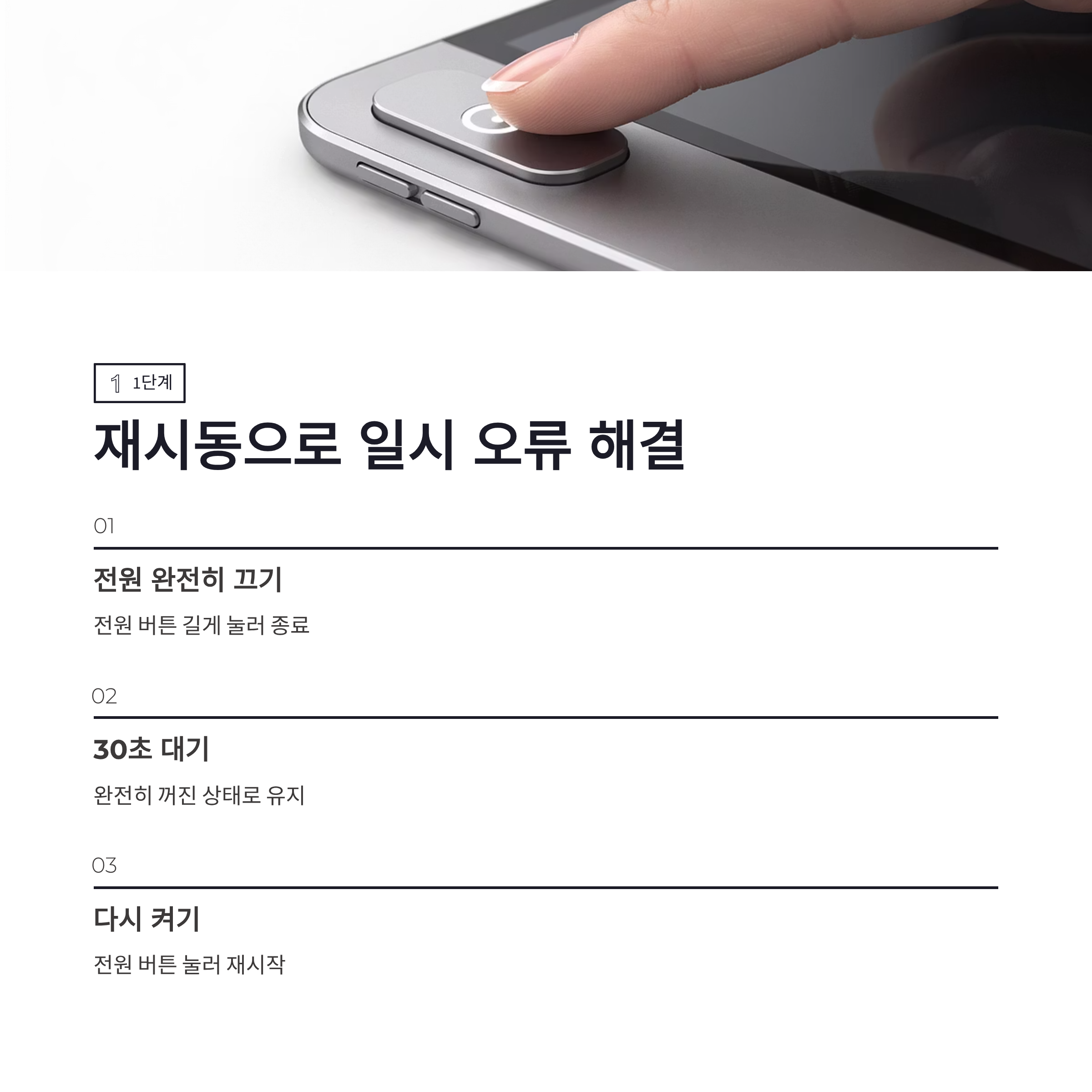 | 재시동 | 전원 껐다 30초 후 켜기 | 일시 오류 해결 👍 |