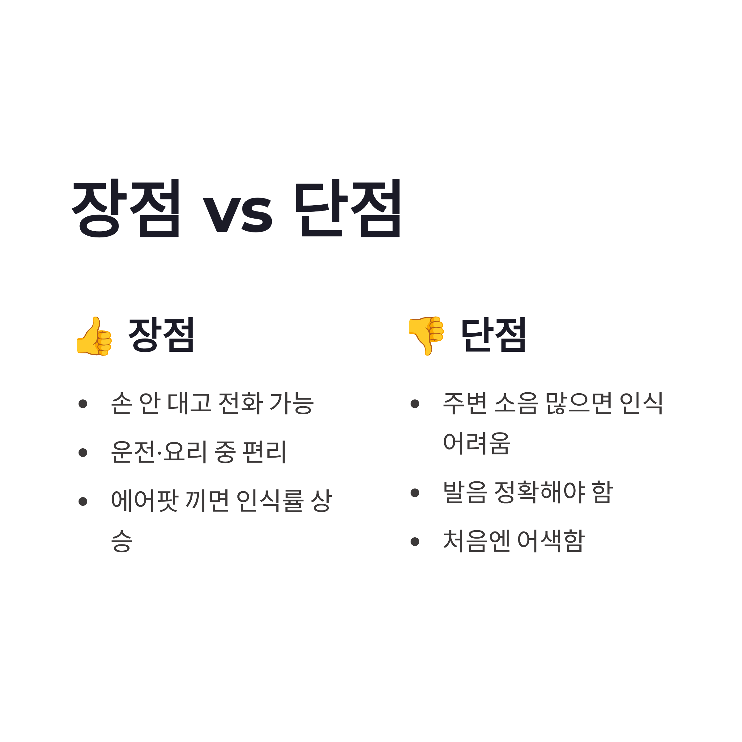 | 전화 명령 | “OO에게 전화해줘” | 연락처 저장 필수 |