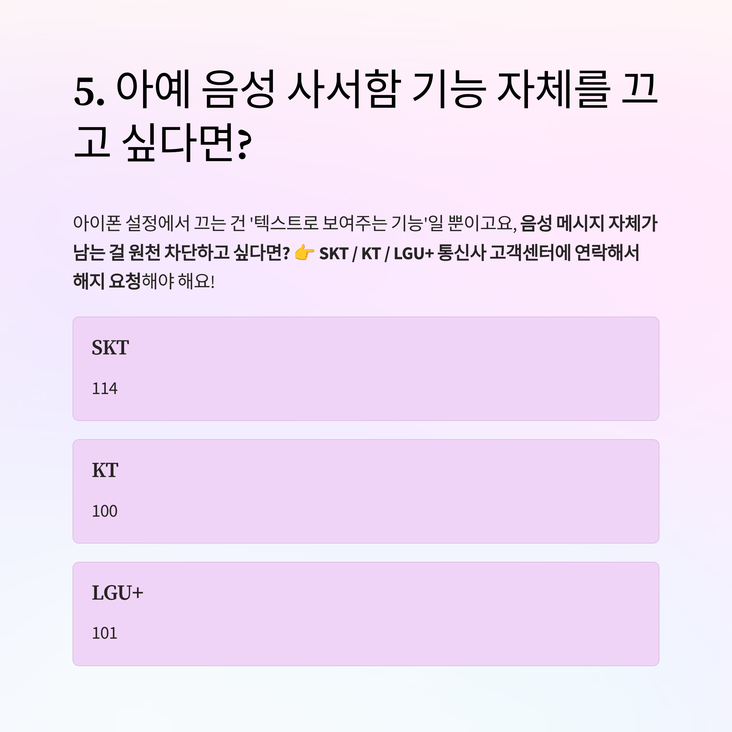 - ✔ 기능 완전 해지 → 통신사 고객센터로 요청