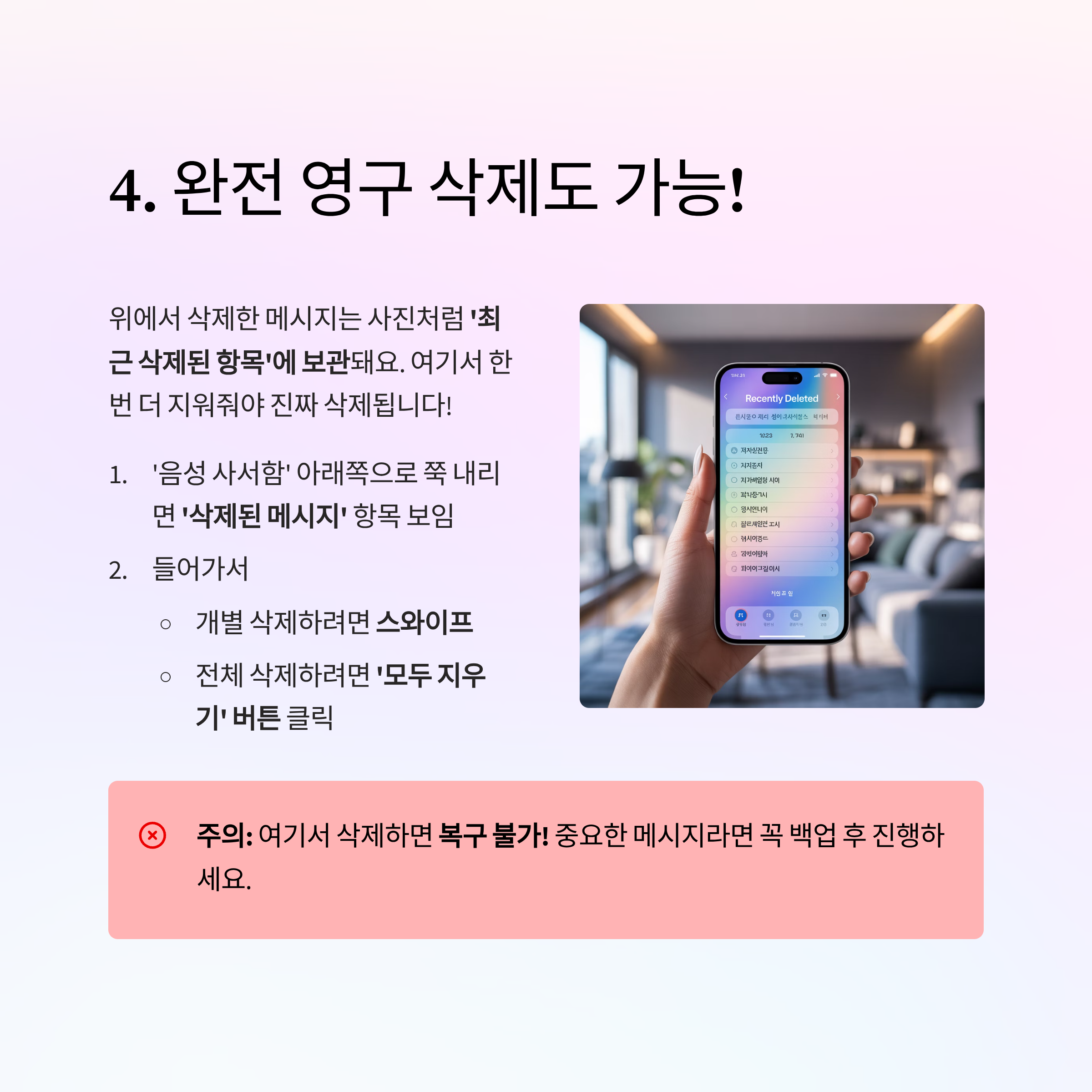 ⚠️ 이 단계에서 삭제하면 복구 불가! 중요한 메시지는 백업 먼저!