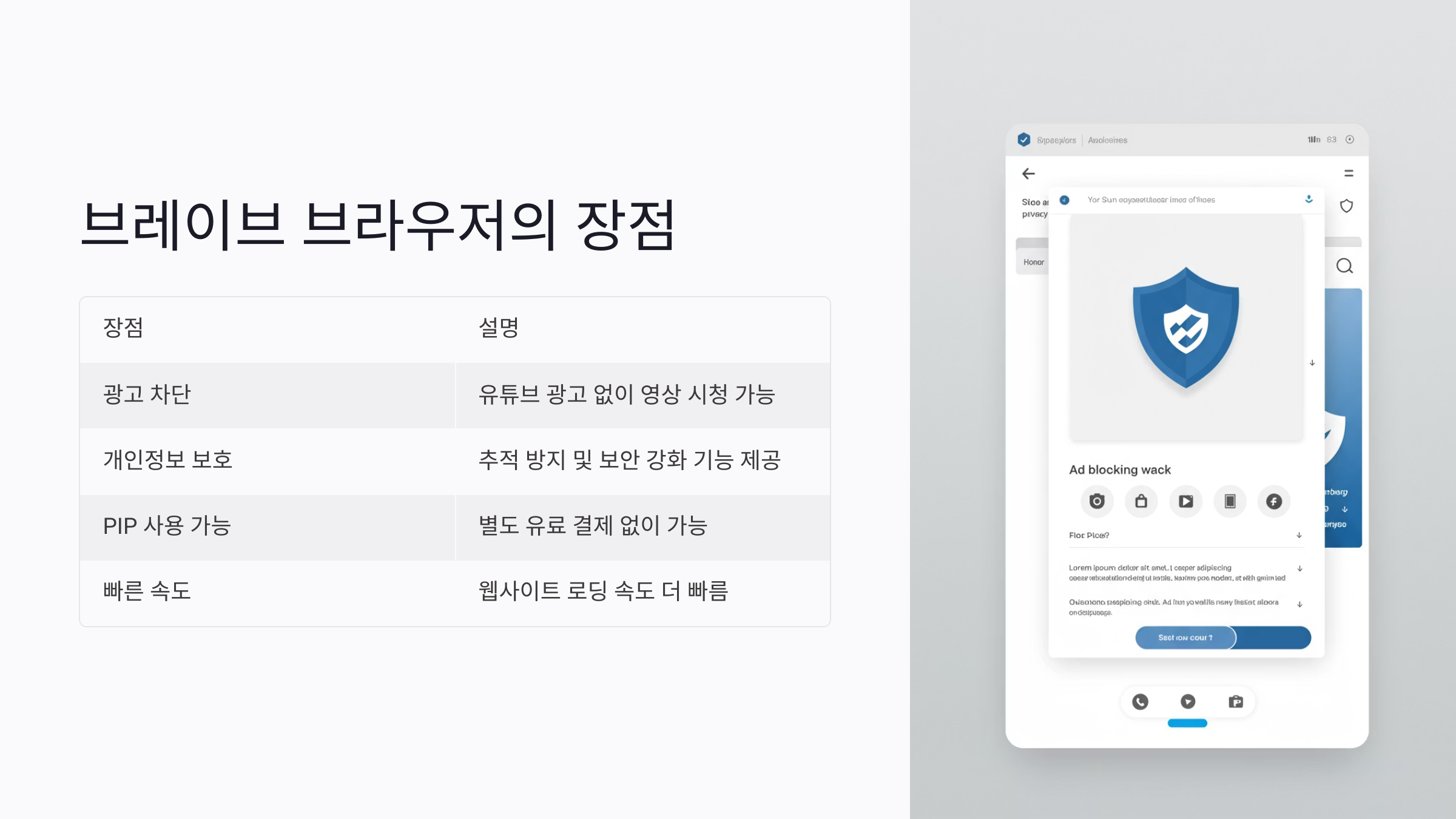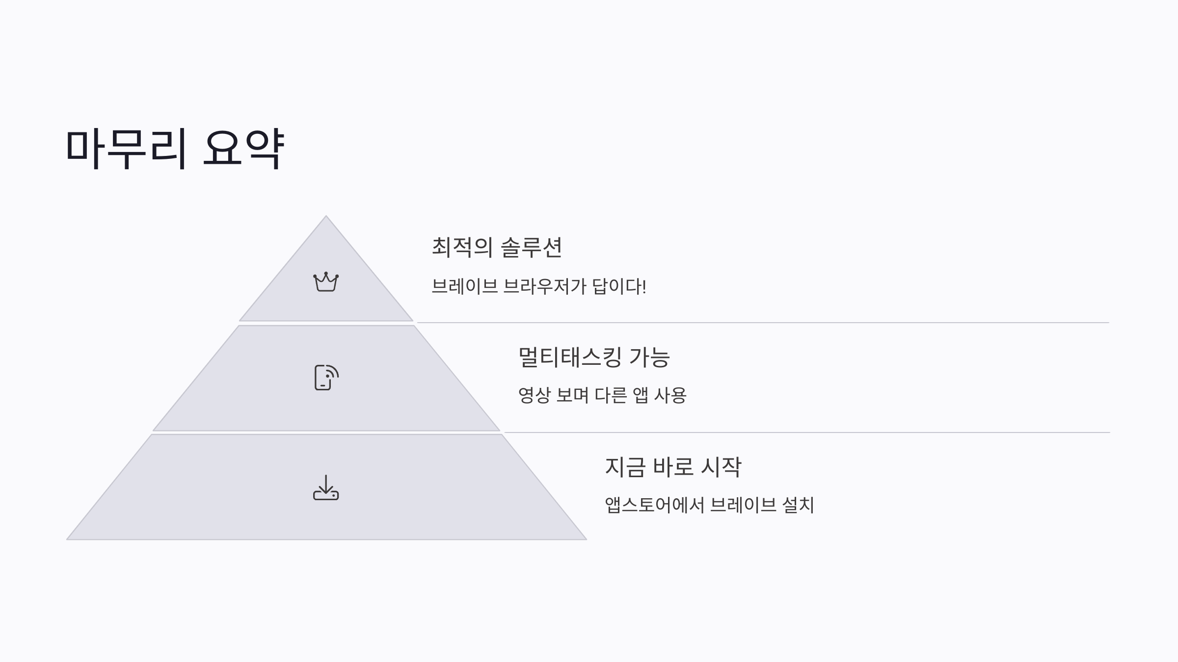 - 아이폰 사파리에서도 일부 유튜브 PIP가 가능하나, 광고 차단은 브레이브가 훨씬 강력합니다.