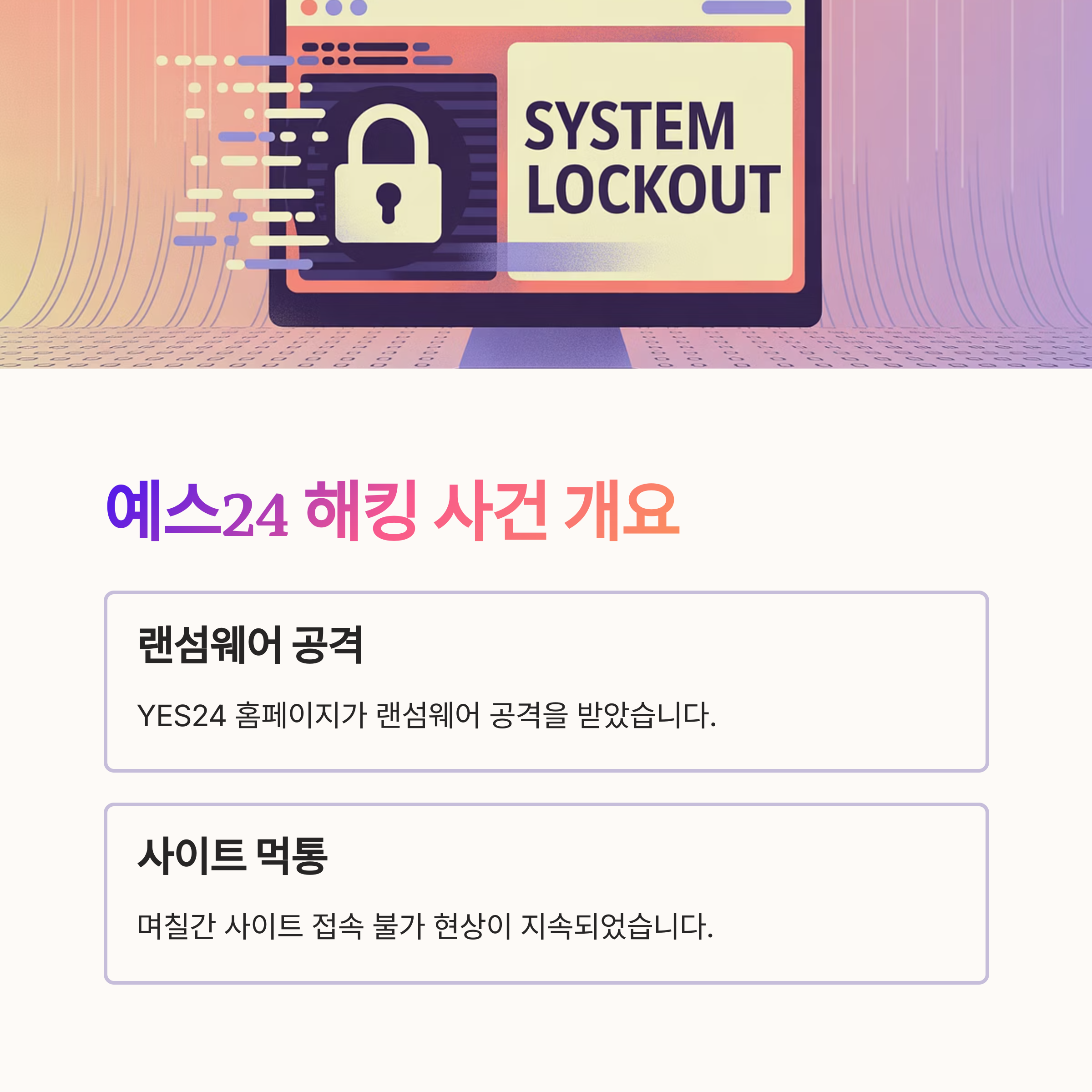 이번 사건은 단순 점검 이슈가 아니라 실제 랜섬웨어 해킹 공격이었고, 예스24 측도 공식 인정했습니다.