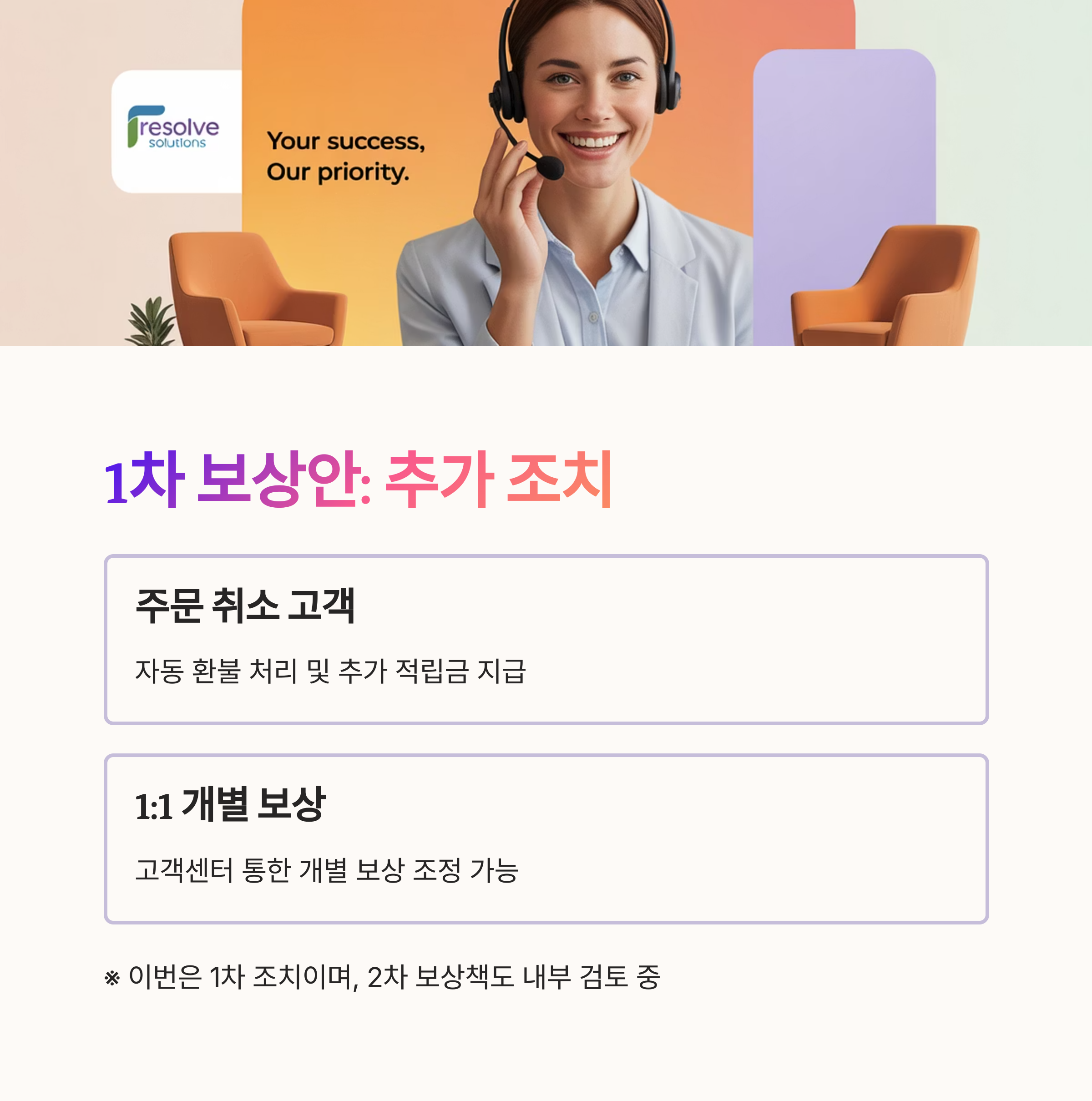 | 1차 보상 | 프리미엄 제공, 주문 환불, 예스포인트 지급 |