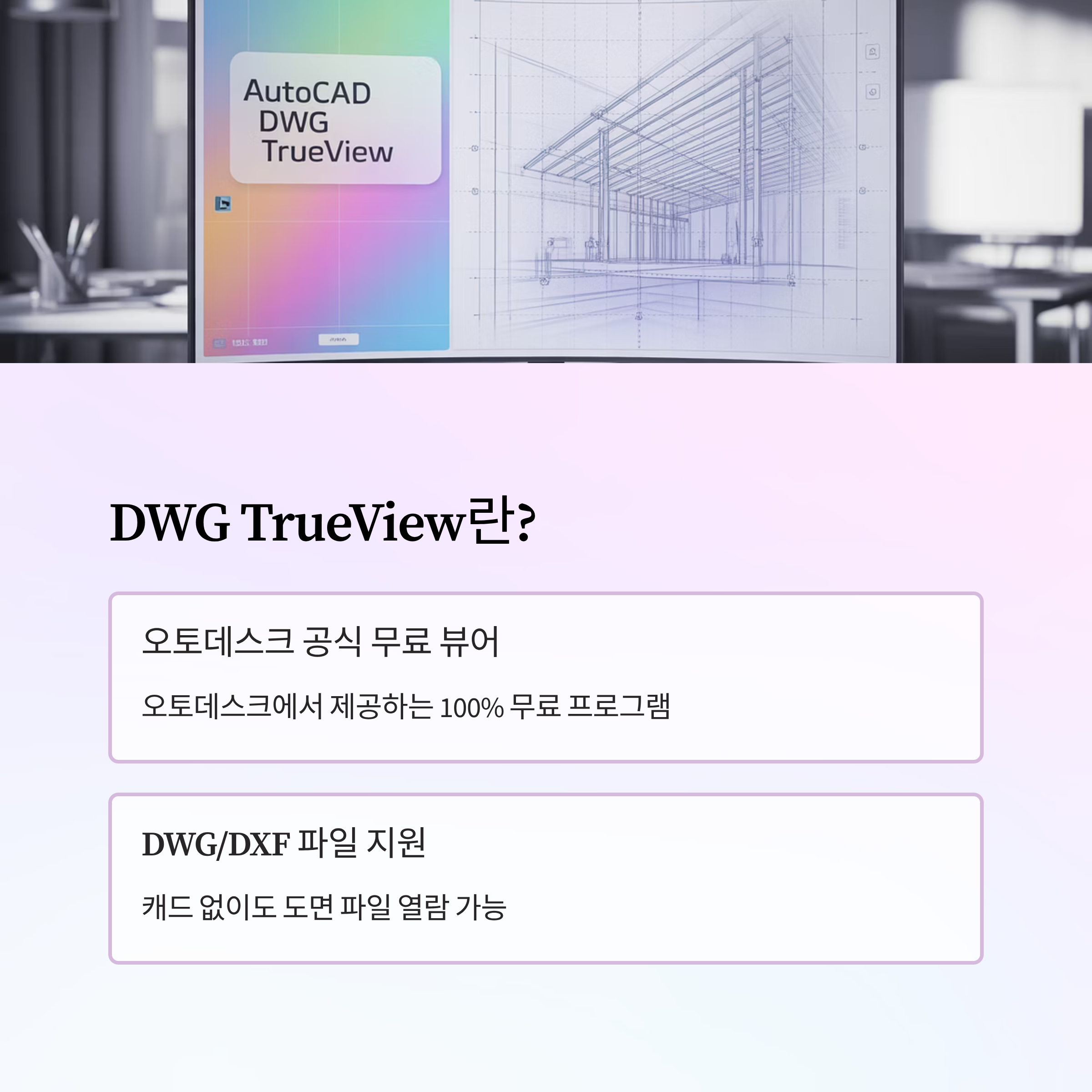 DWG TrueView는 오토데스크에서 공식 제공하는 무료 DWG/DXF 파일 뷰어입니다.