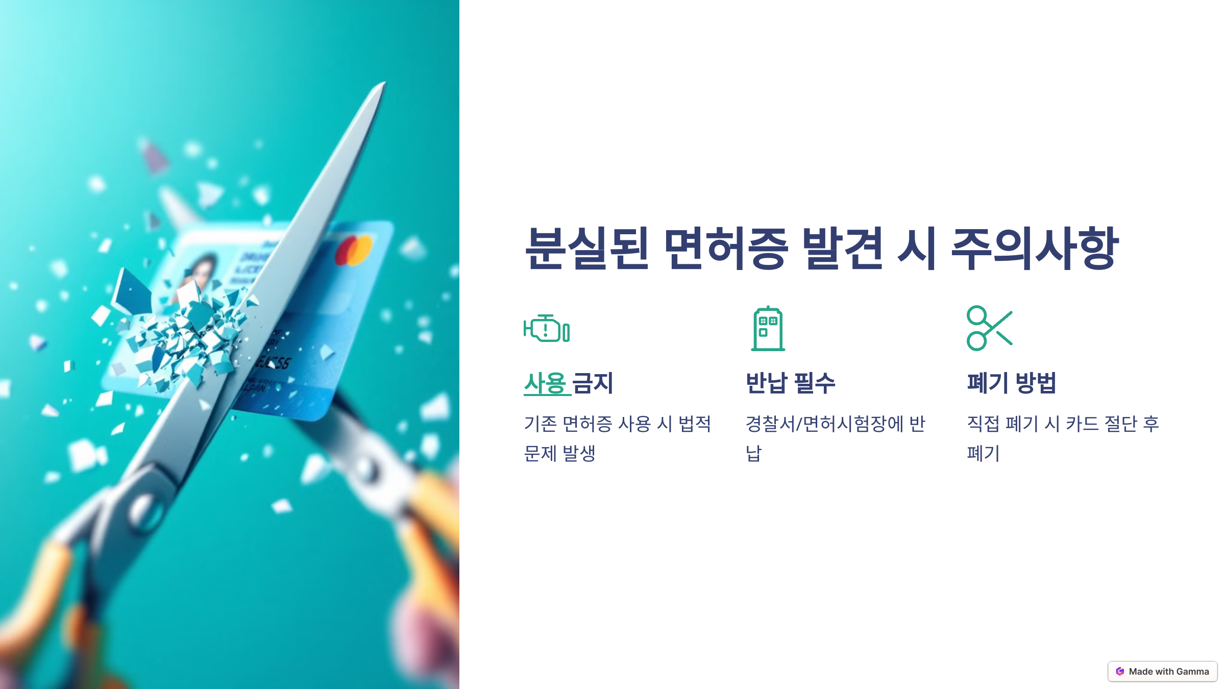 분실 신고 후 기존 면허증을 찾았을 경우에도 반드시 기존 면허증을 폐기해야 합니다. 기존 면허증을 사용하면 법적으로 문제가 될 수 있습니다.