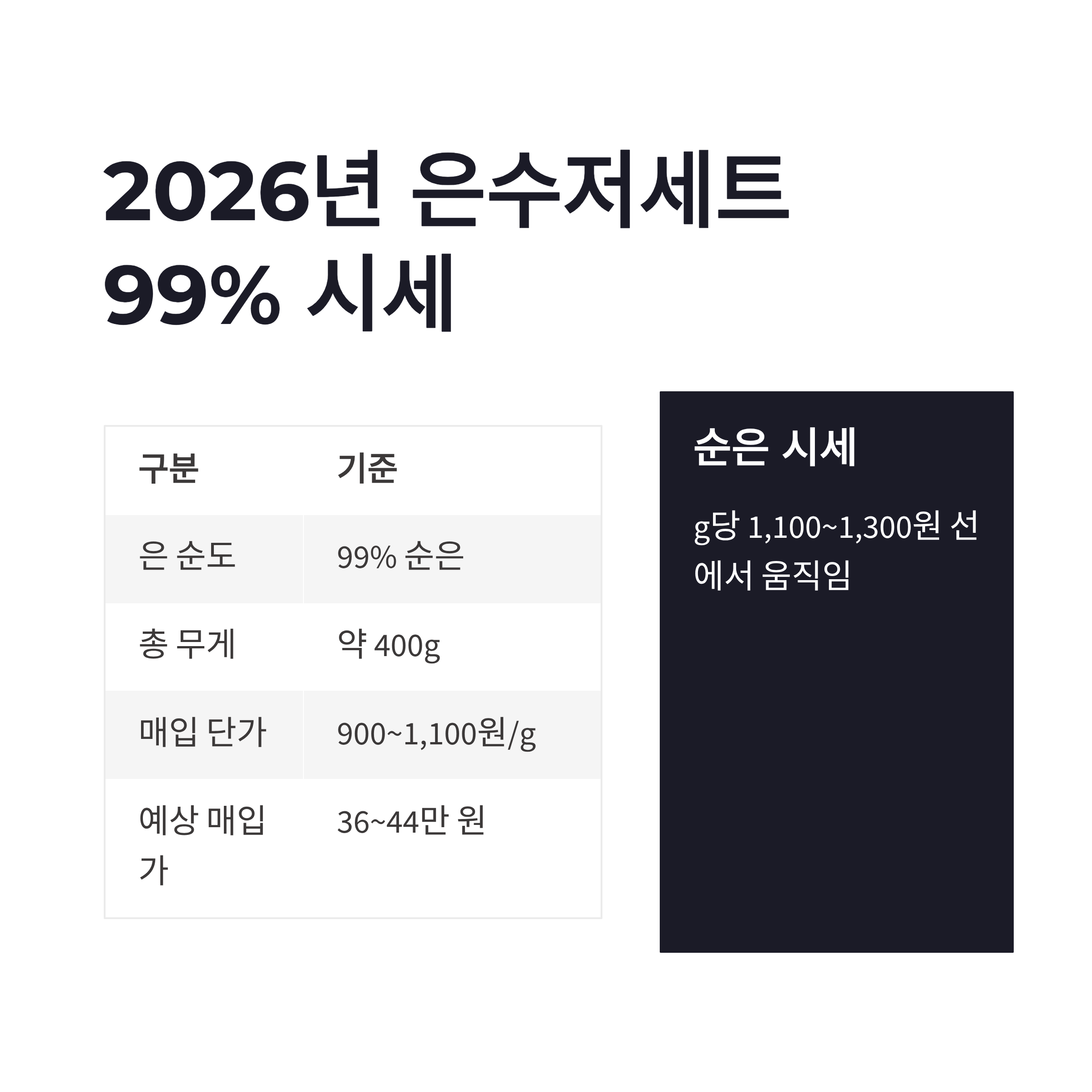 은수저세트 99% 기준, 시세 계산은 이렇게 됐어요