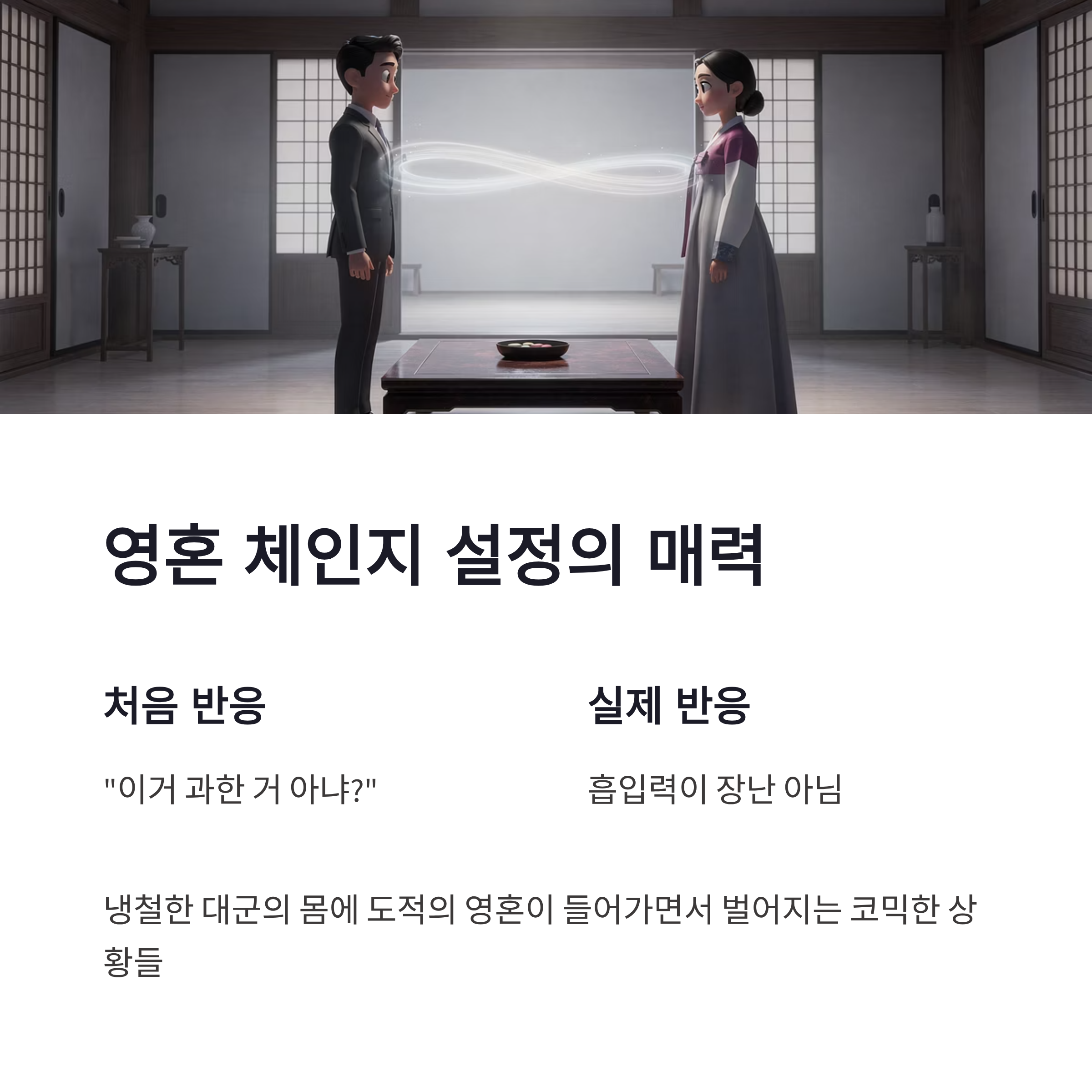| 전개 | 영혼 체인지 | 로맨스+코미디 상승 |