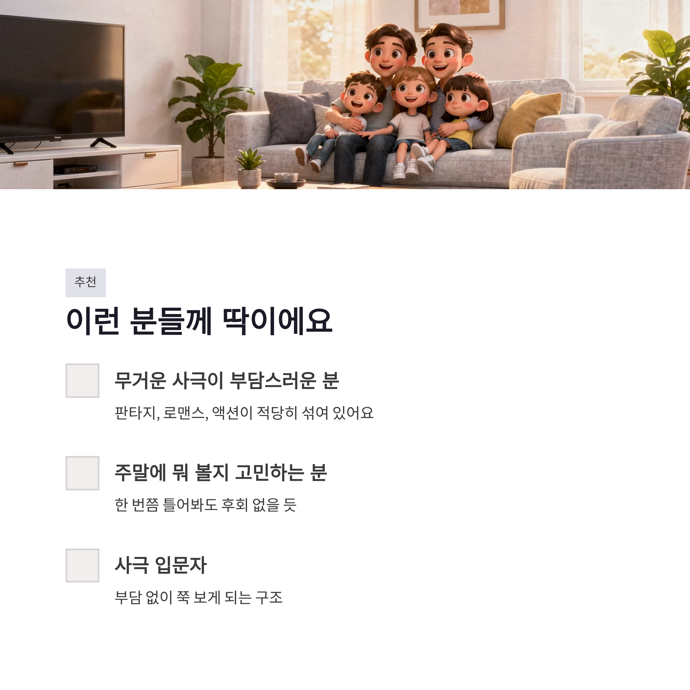 | 분위기 | 판타지 사극 | 무겁지 않아 보기 편함 |